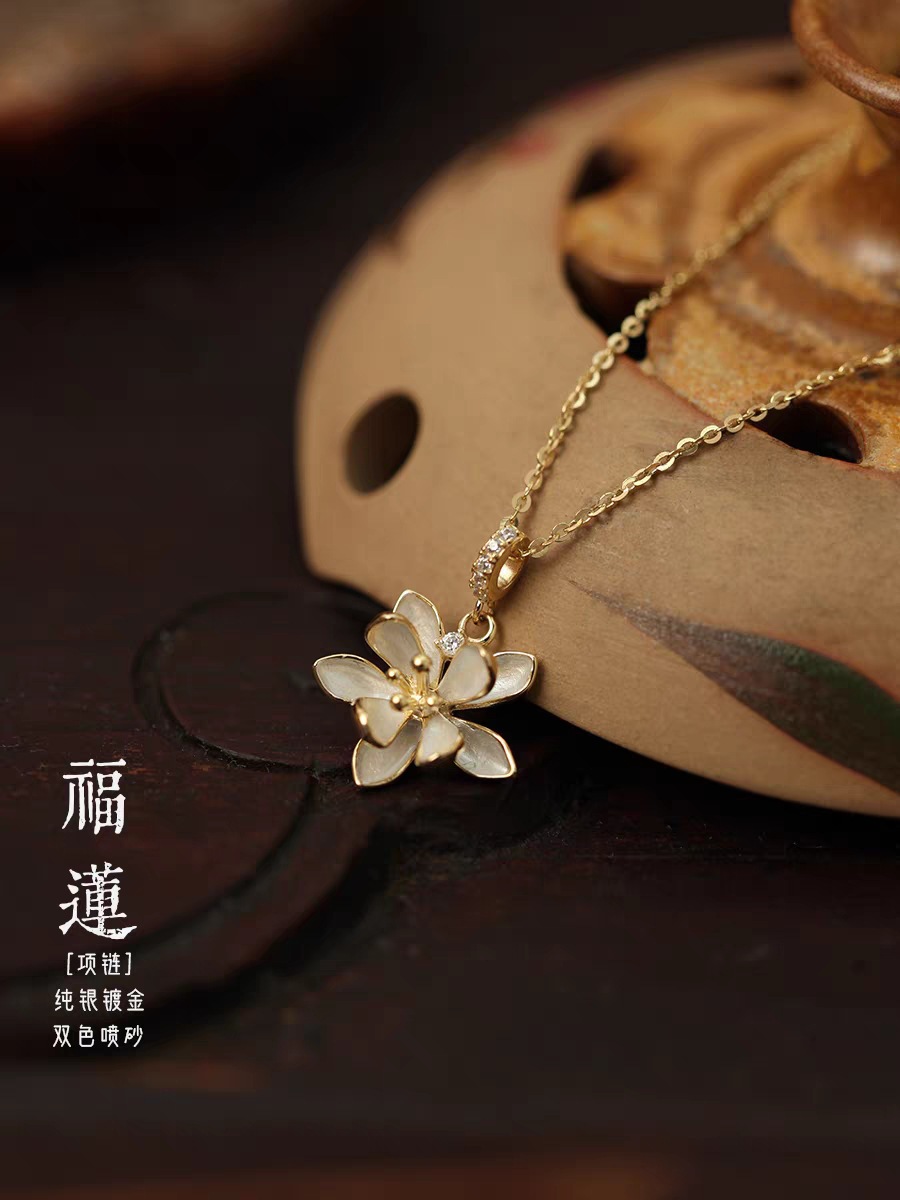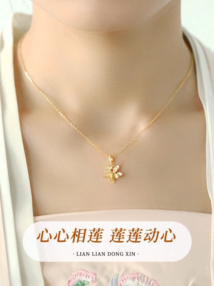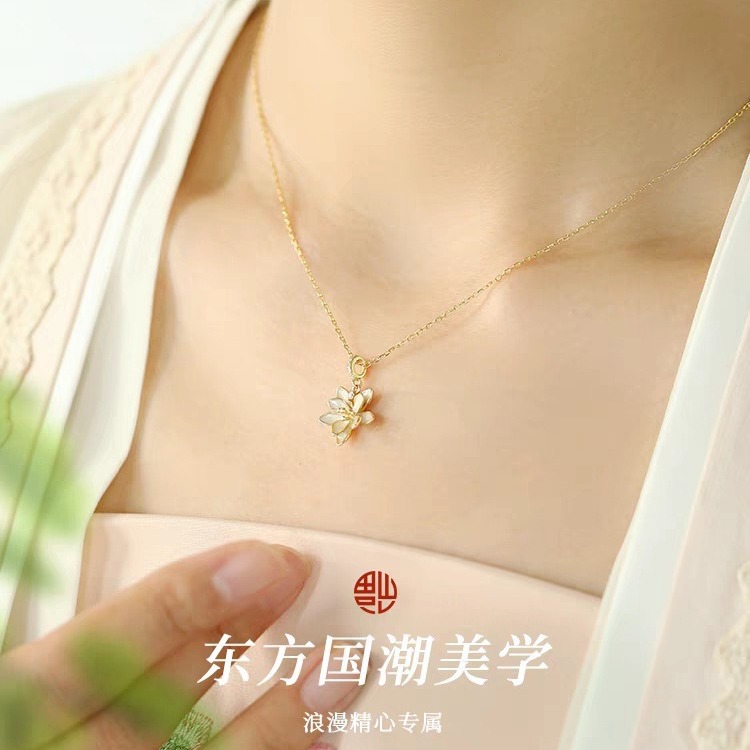 2023 New Lotus Necklace Female Temperament All-match National Fashion Style Clavicle Chain Fashion Luxury diy Pendant Jewelry