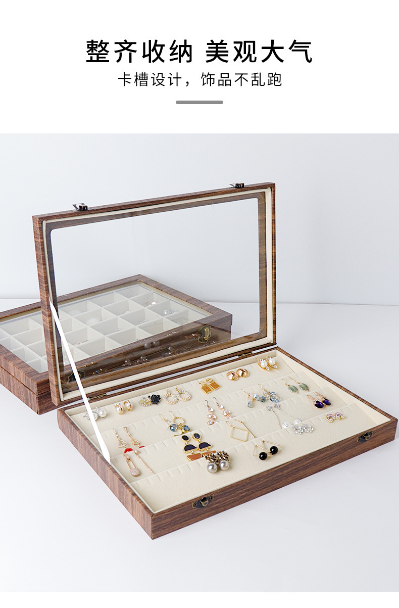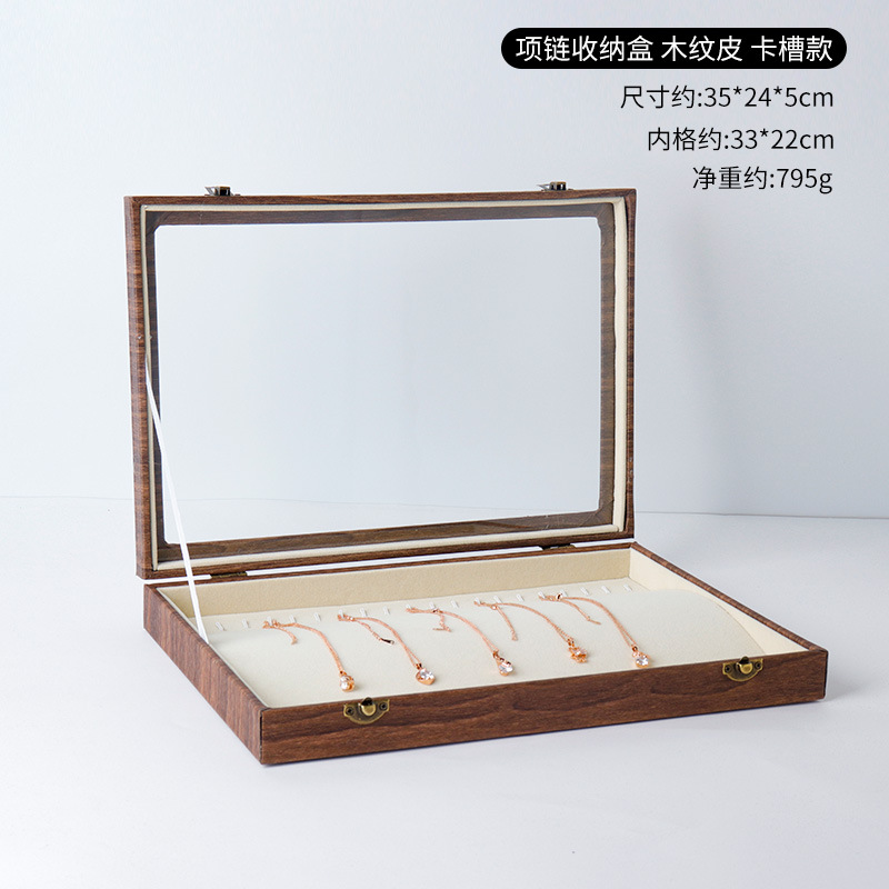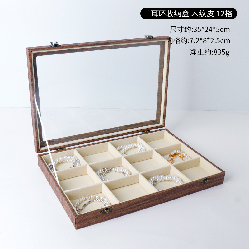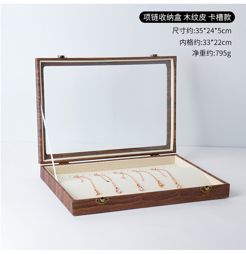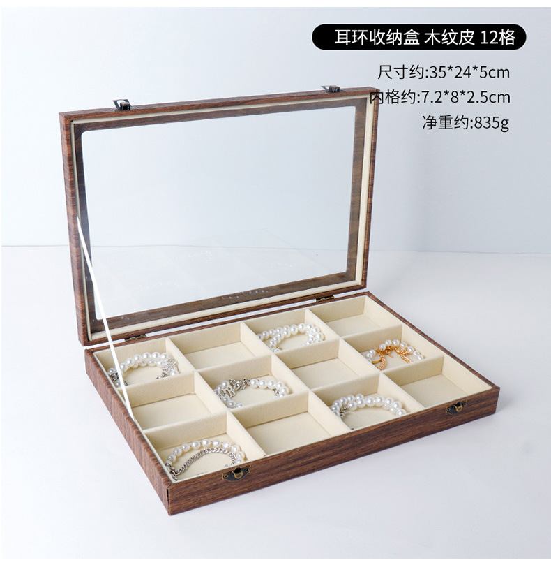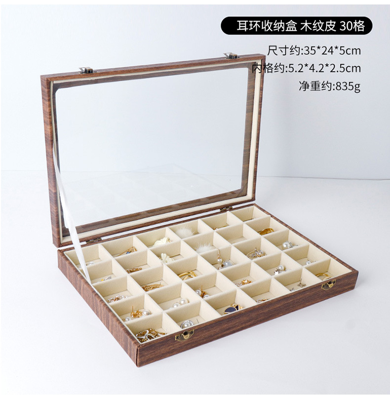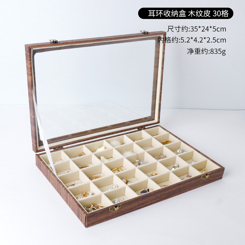 In stock wood grain leather jewelry box earrings earrings necklace storage box household large capacity anti-oxidation jewelry box