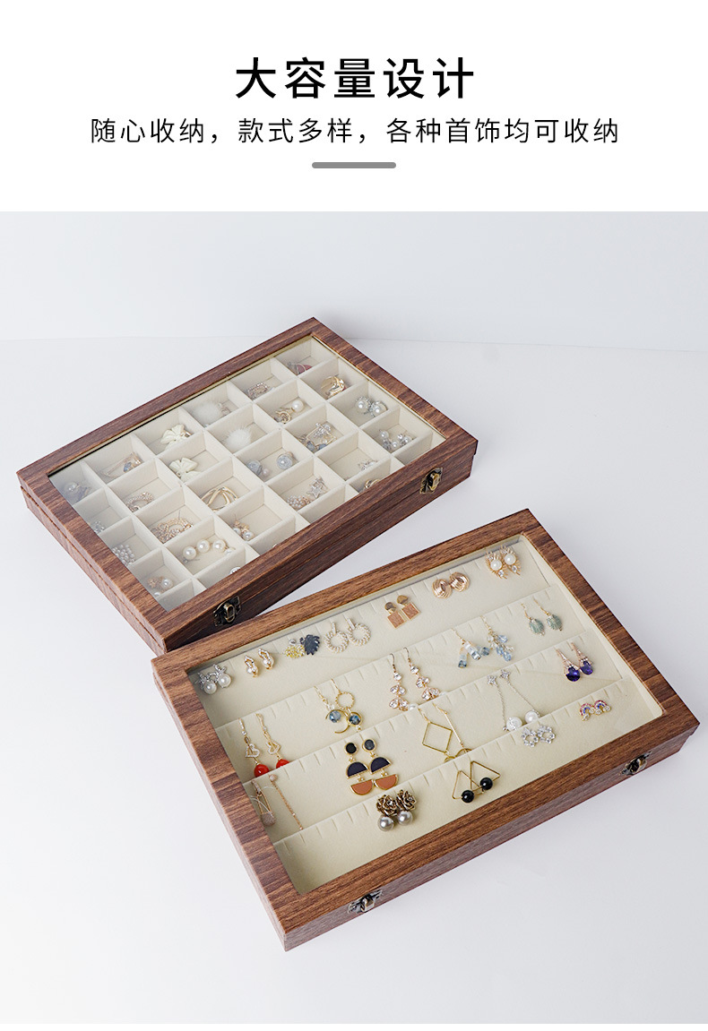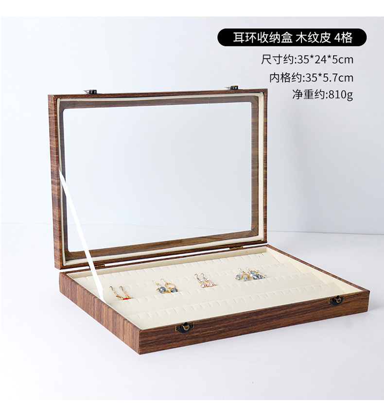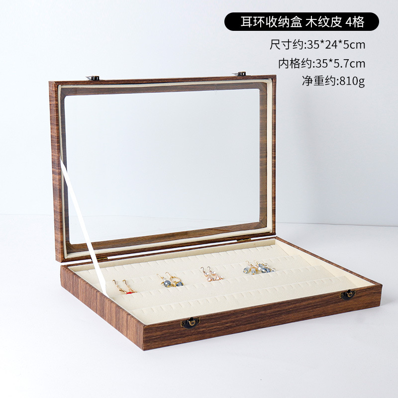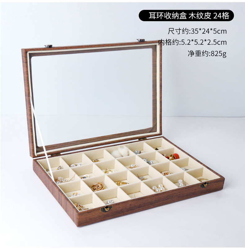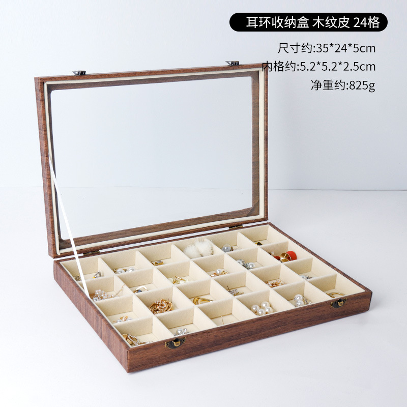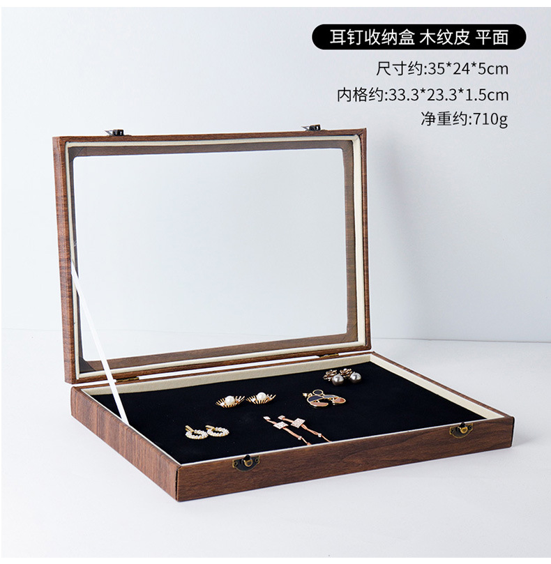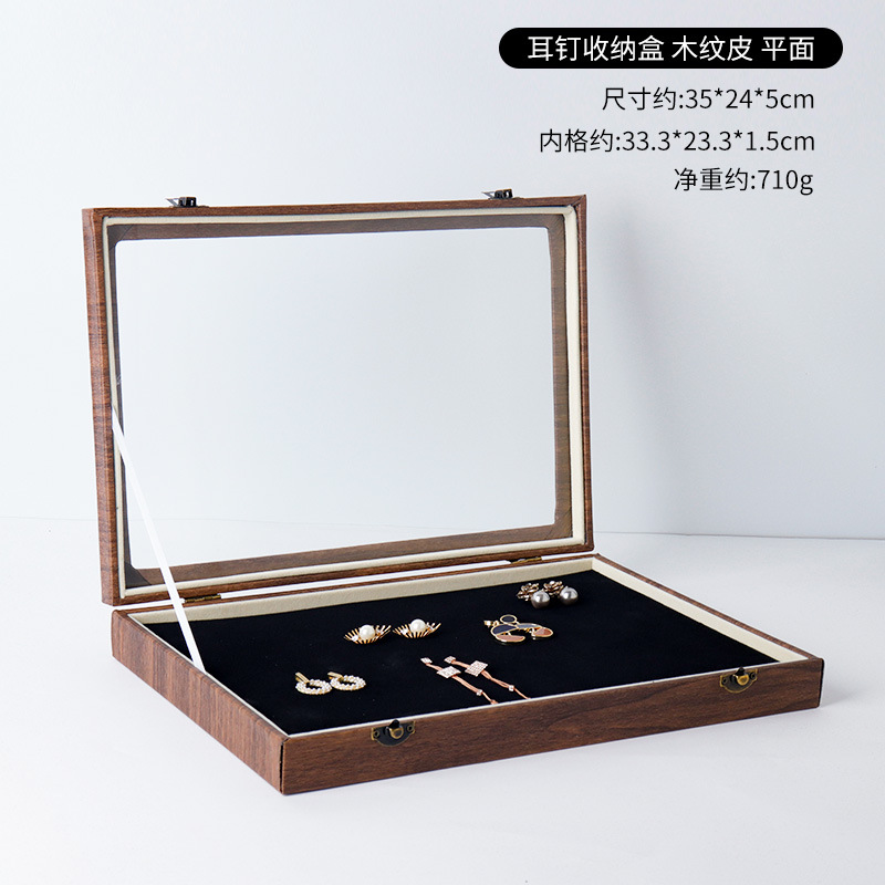 In stock wood grain leather jewelry box earrings earrings necklace storage box household large capacity anti-oxidation jewelry box