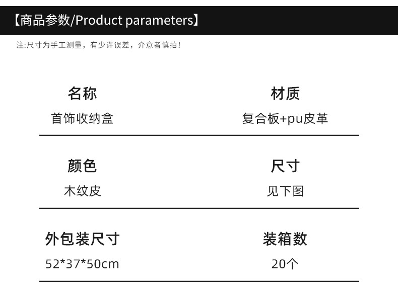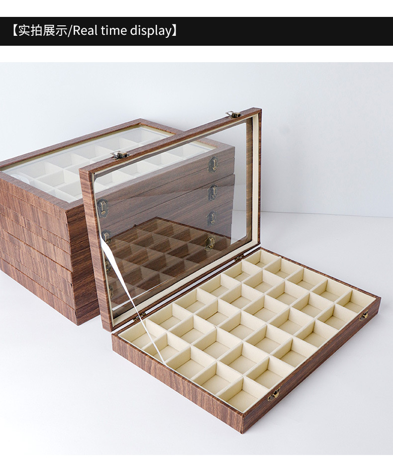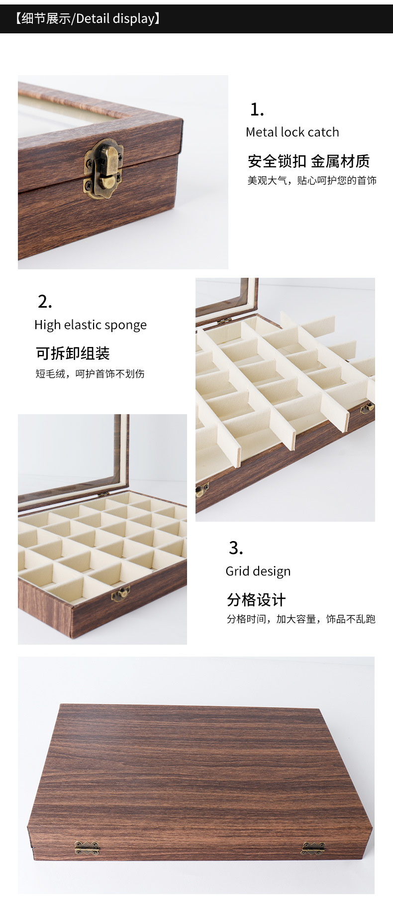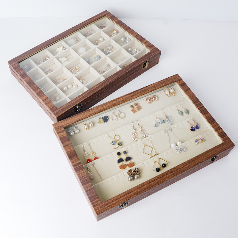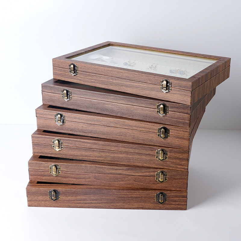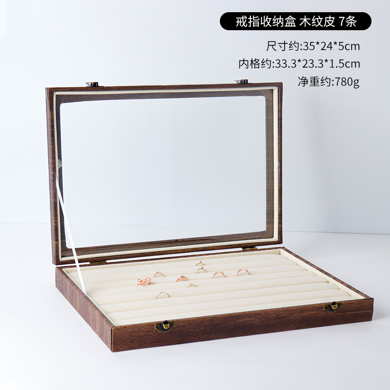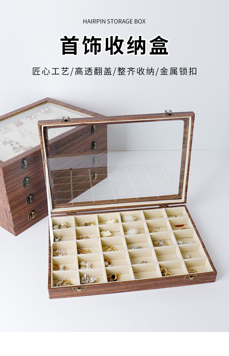 In stock wood grain leather jewelry box earrings earrings necklace storage box household large capacity anti-oxidation jewelry box