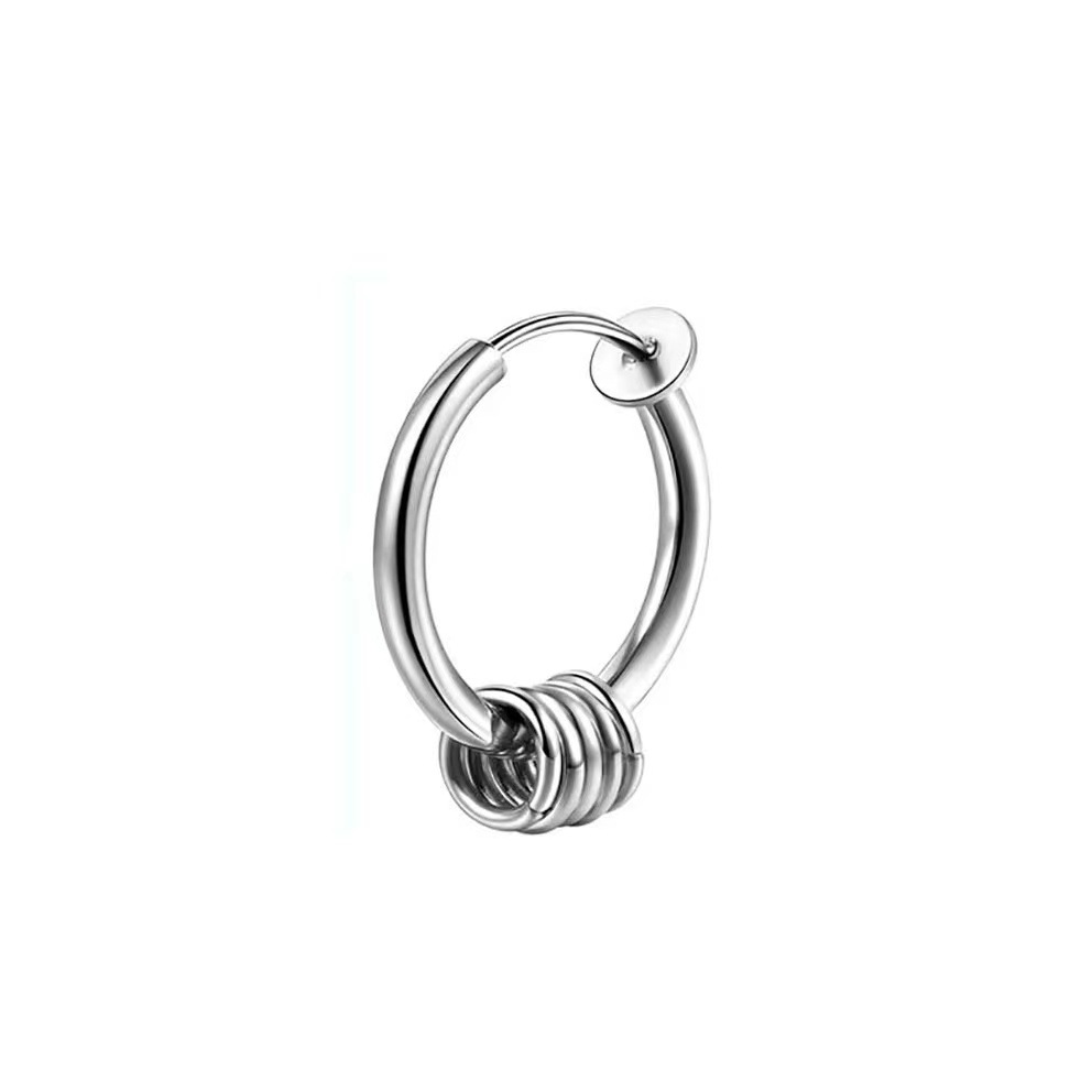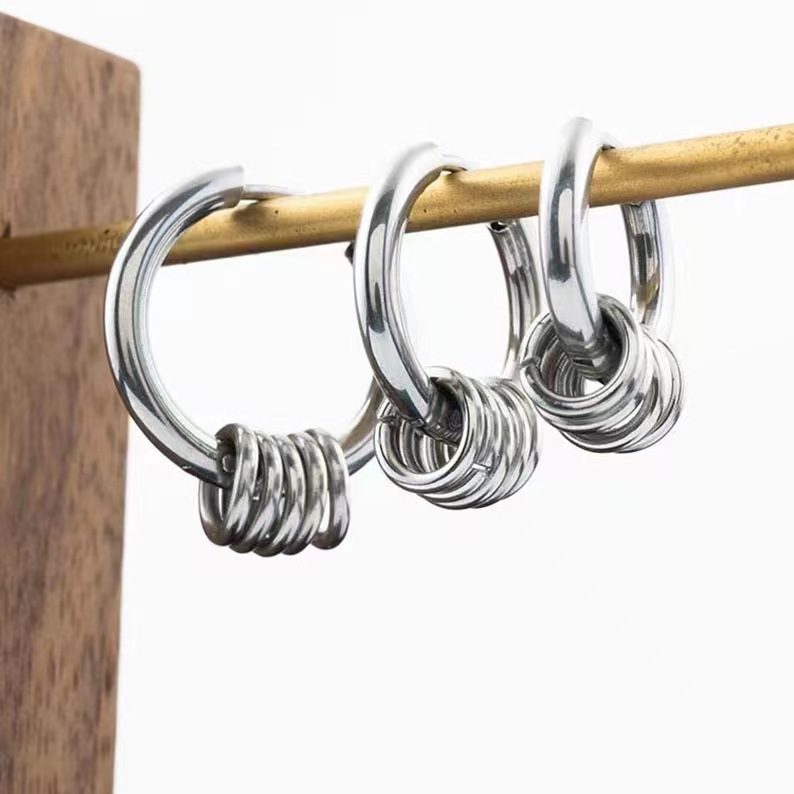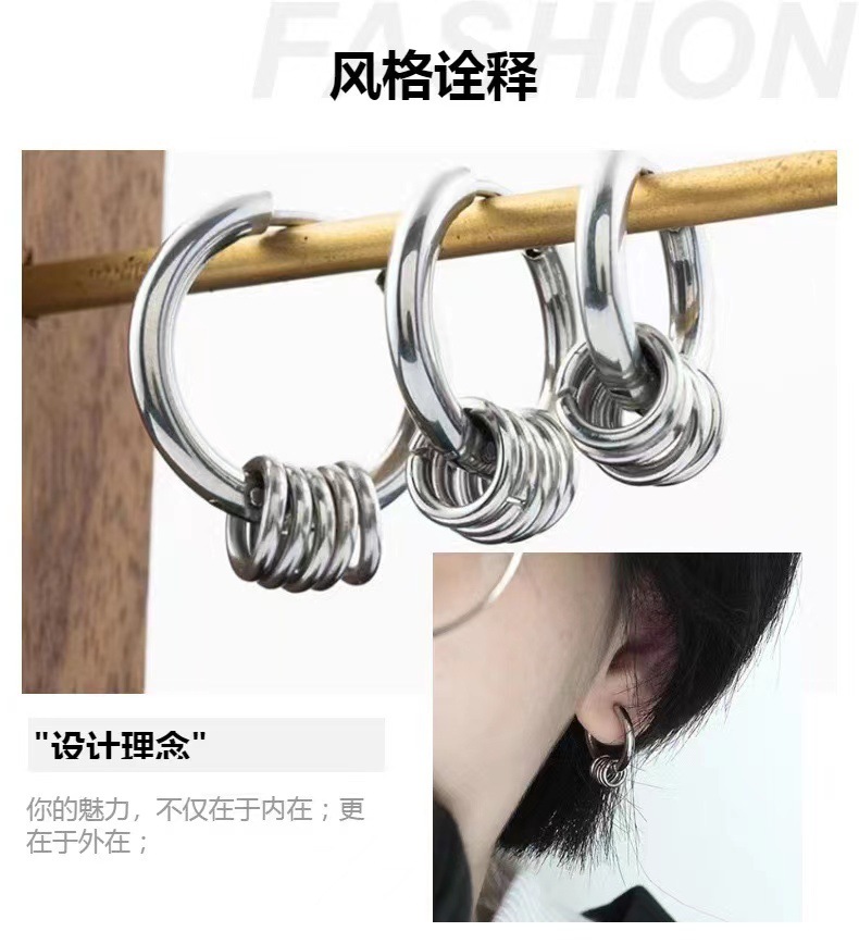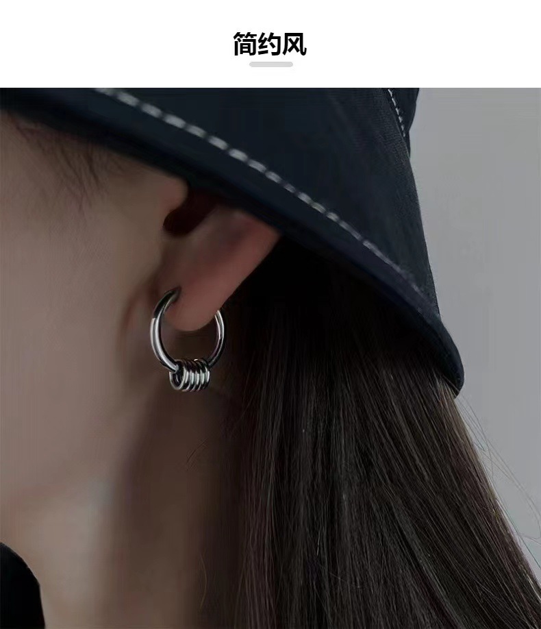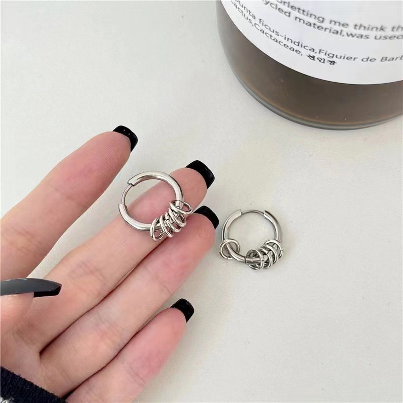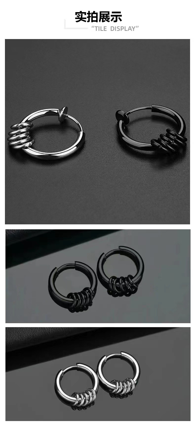 Japanese and Korean Fashion Circle 5 Ring Earrings Stainless Steel Spring Ear Clip Pierced Free Earrings Men's Distinctive Hip Hop Ear Buckle