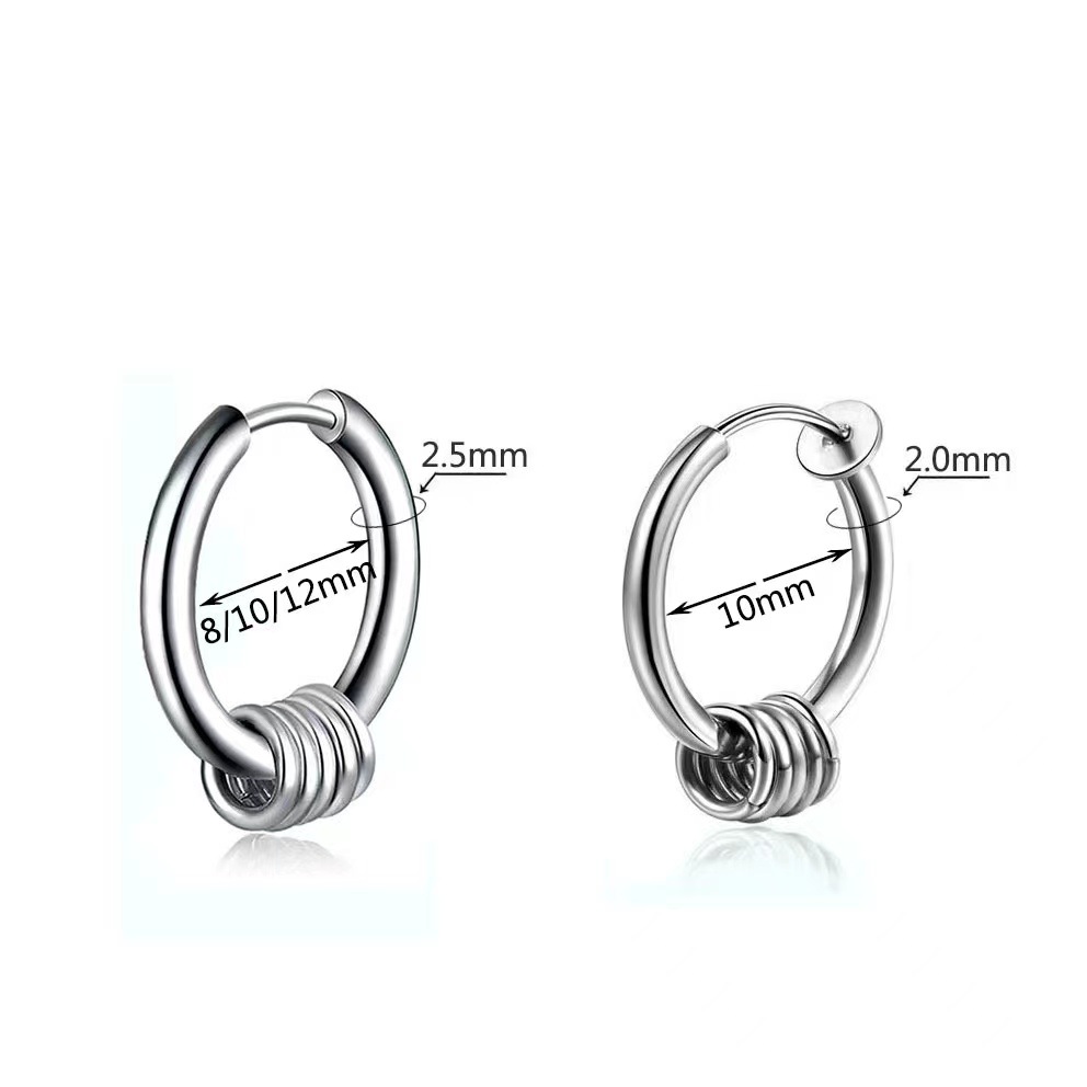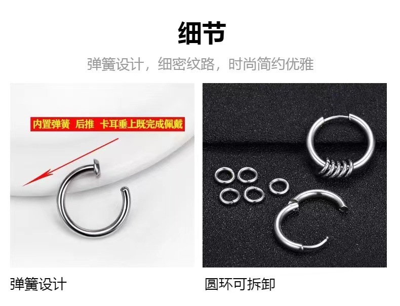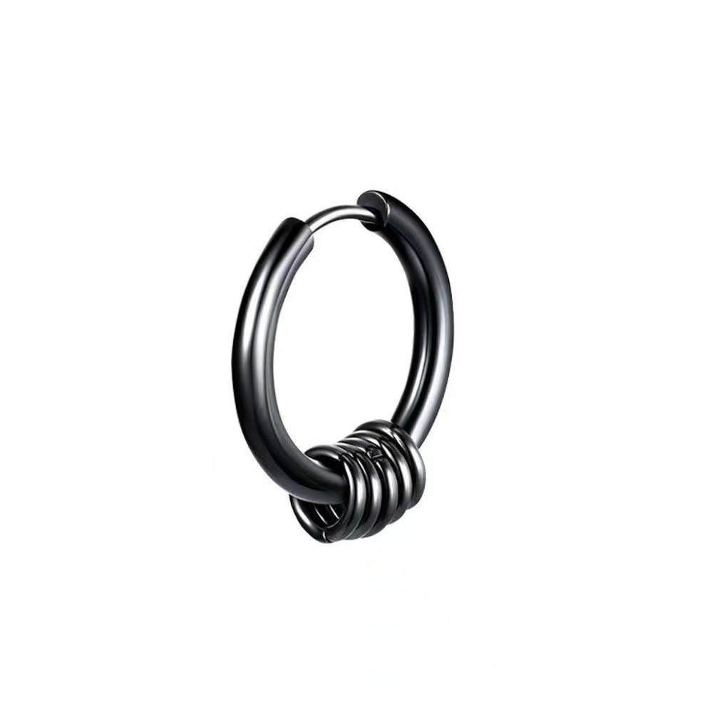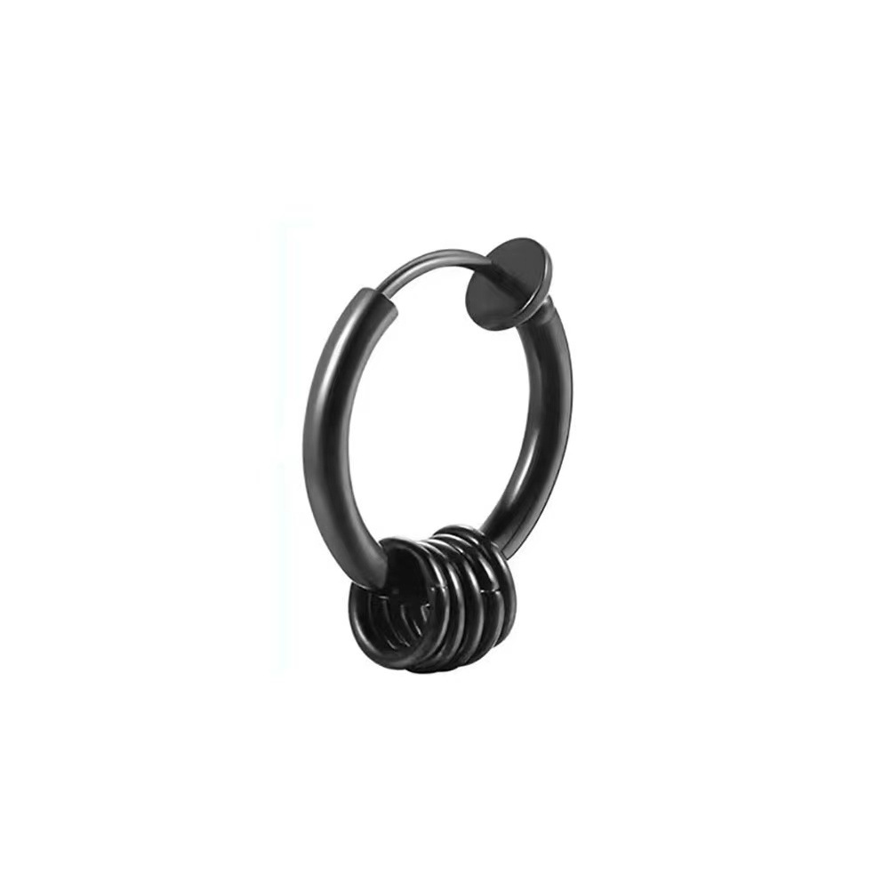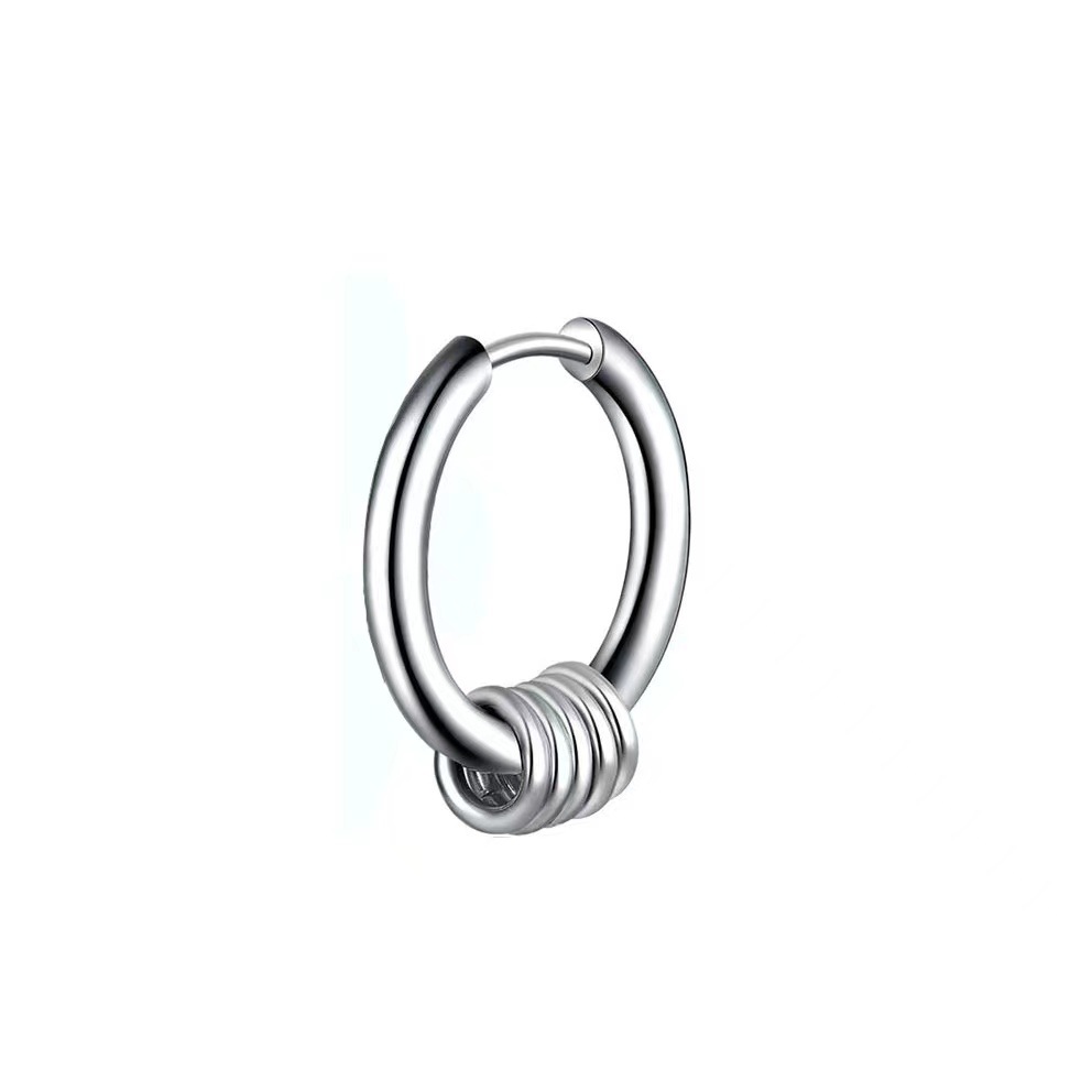 Japanese and Korean Fashion Circle 5 Ring Earrings Stainless Steel Spring Ear Clip Pierced Free Earrings Men's Distinctive Hip Hop Ear Buckle
