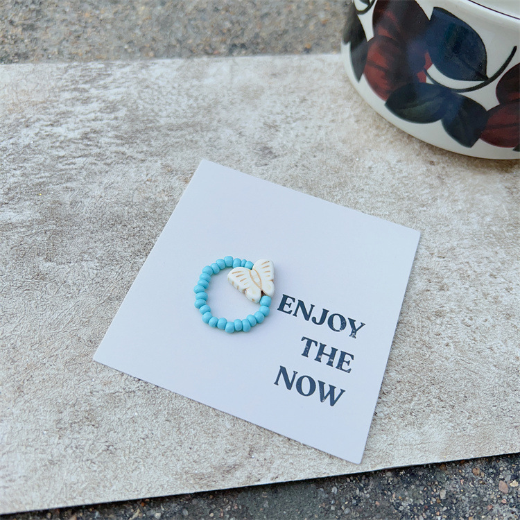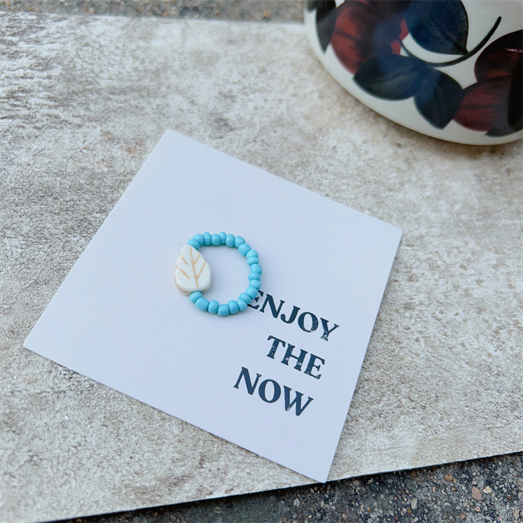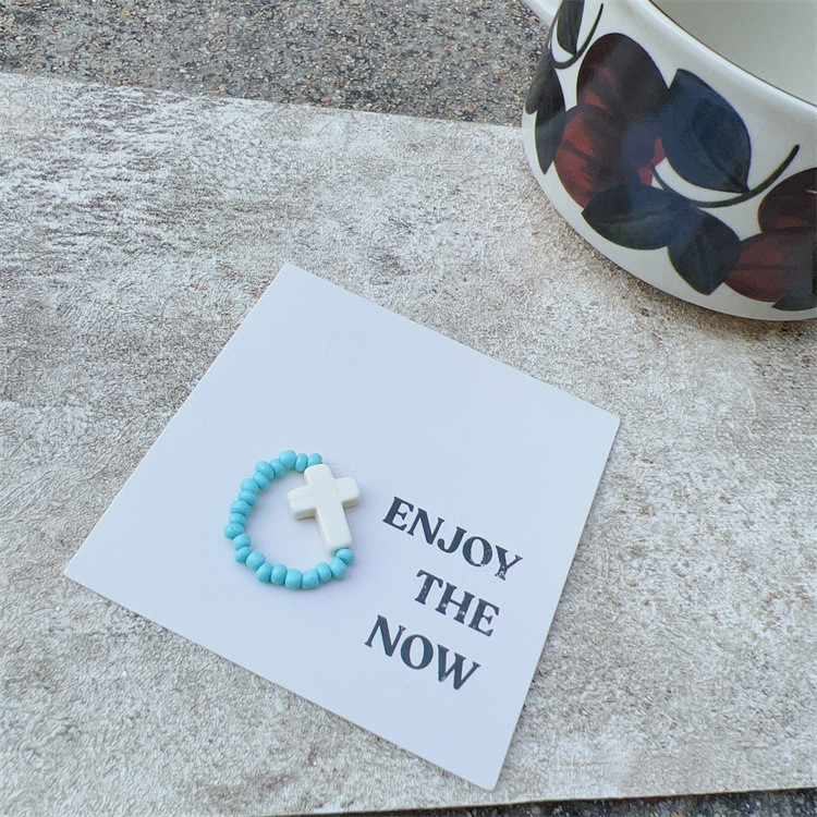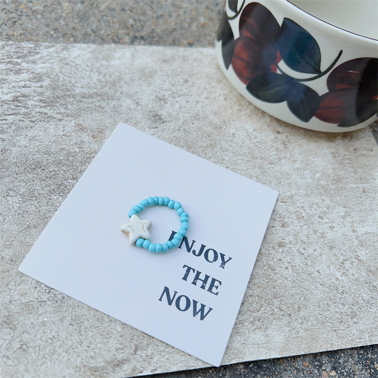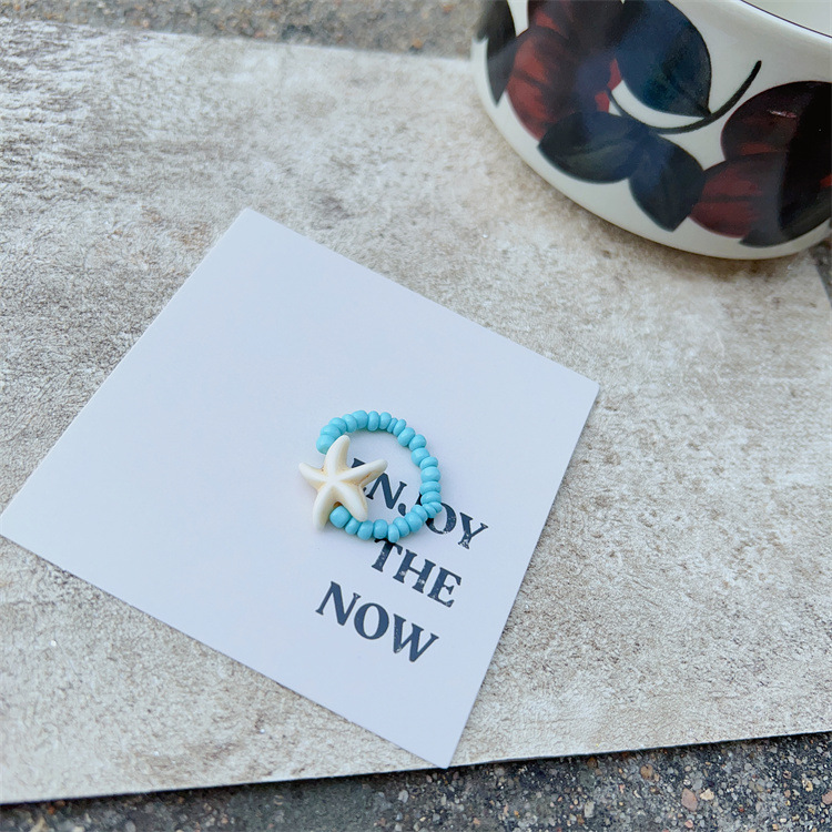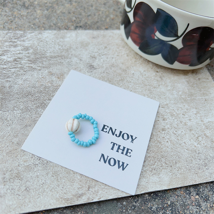 Summer Beach style geometric cross beaded ins style all-match rice beads elastic ring hot girl girl sweet cool ring