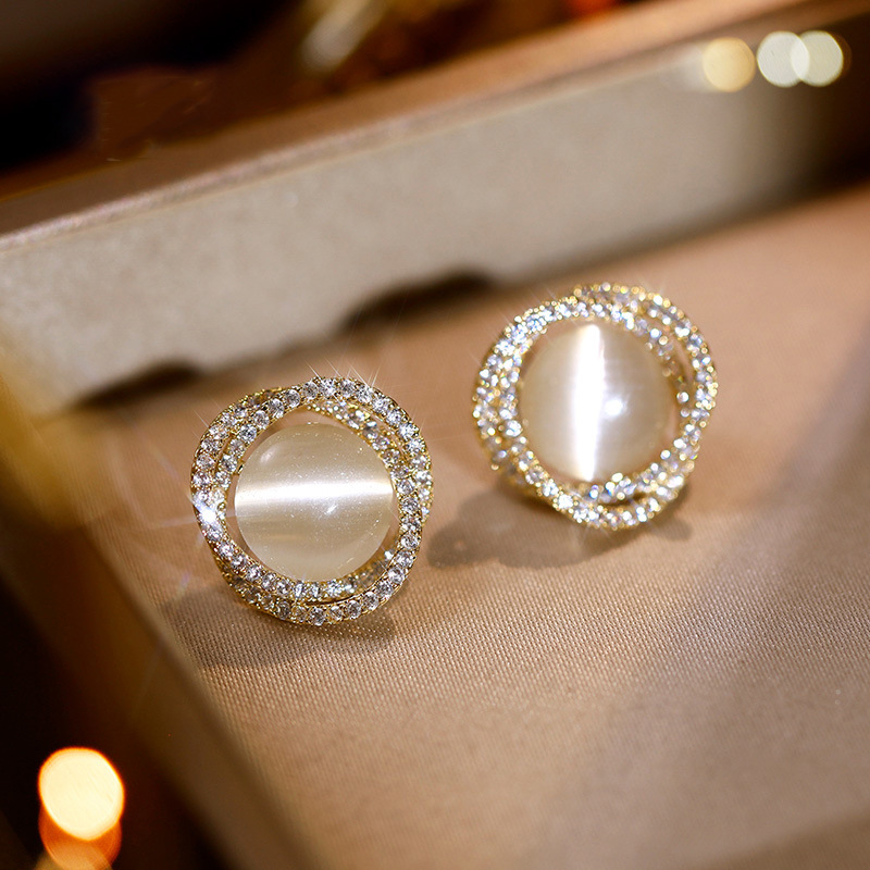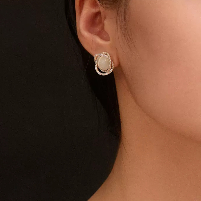Cat's eye stone earrings niche design high-grade mosquito-repellent incense plate ear clip women's No ear hole retro temperament pearl earrings fashion