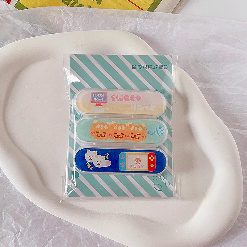 Contact Lens Clip Three Pack Set Student Cute Cartoon Theme Tweezers One-piece Clip Independent Storage