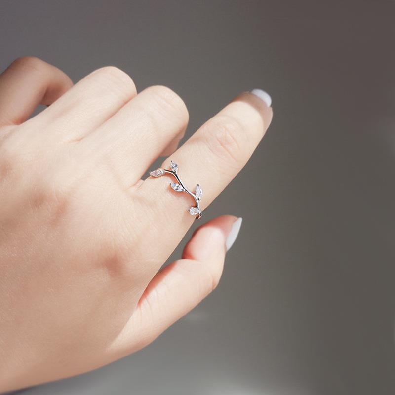 Silver Shenzhen s925 Sterling Silver Open Ring Temperament Branch Diamond Ring Japanese and Korean Creative Small Clear Open Adjustable