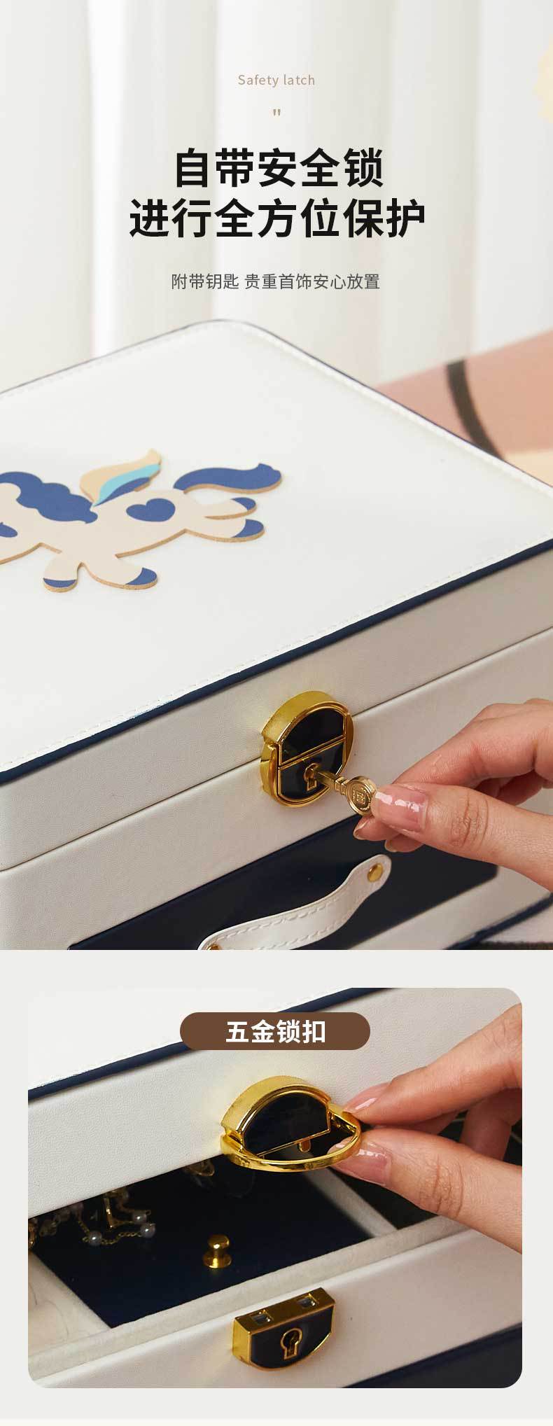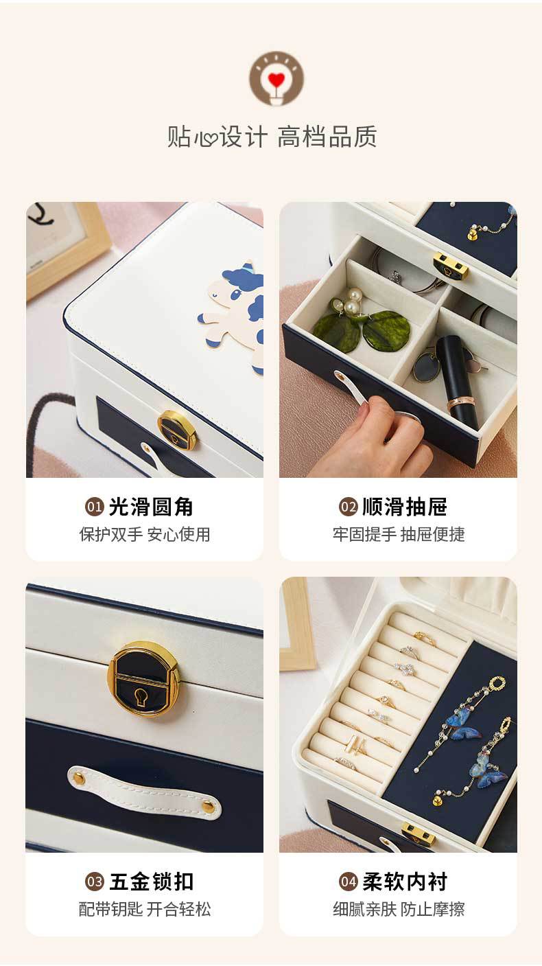 Pony Multi-layer Jewelry Box with Lock Large Capacity Jewelry Storage Box Earrings Earrings Necklace Jewelry Storage Box