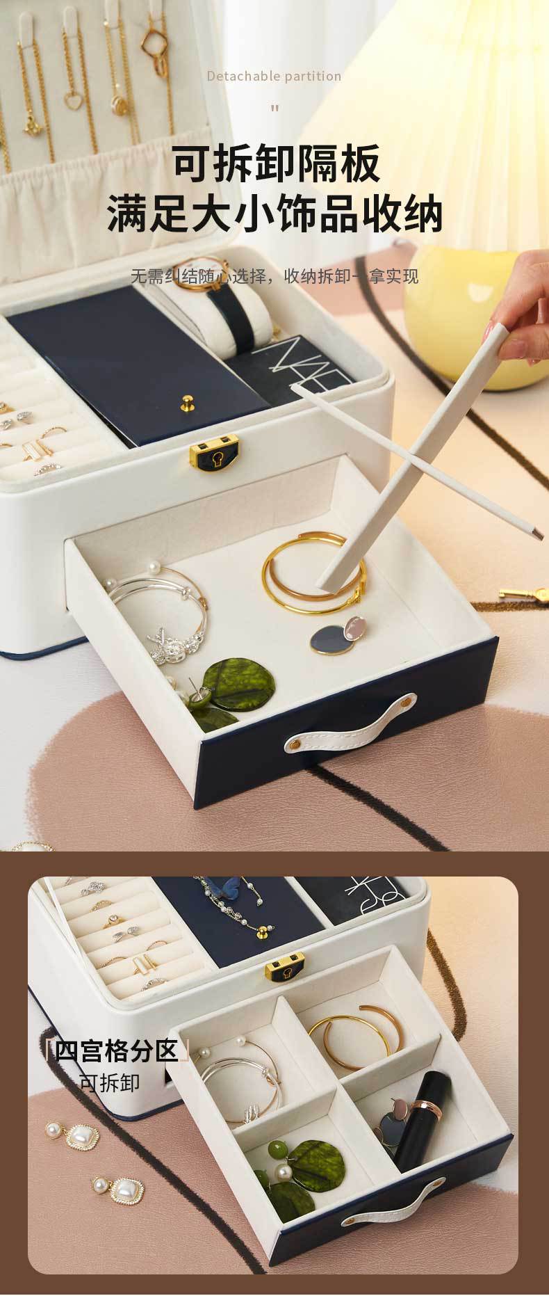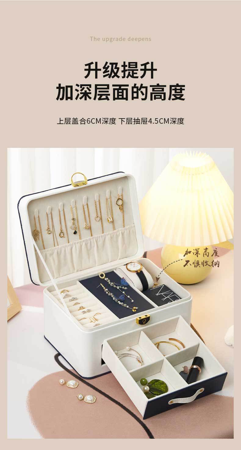 Jewelry Storage Box: Household large-capacity jewelry storage with lock