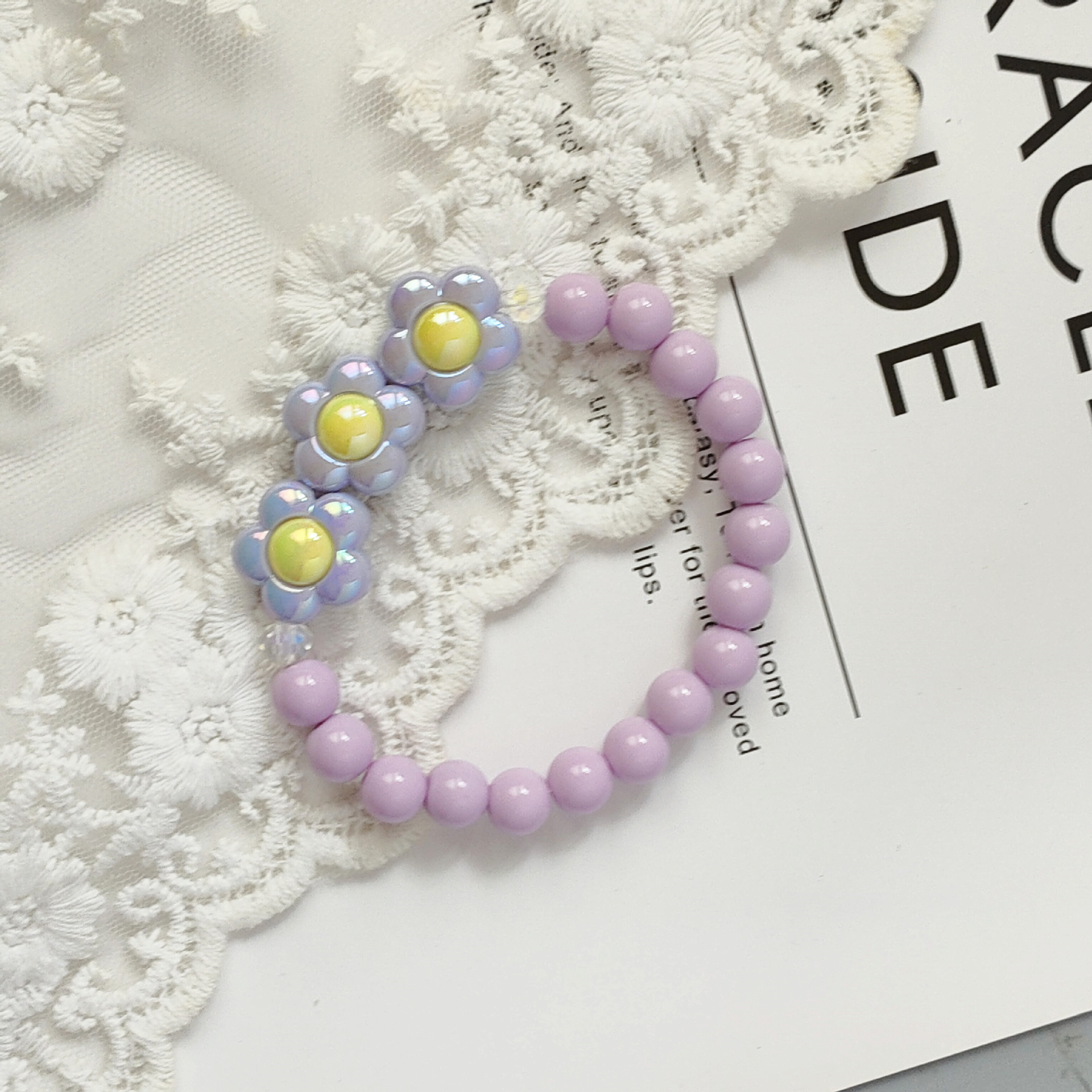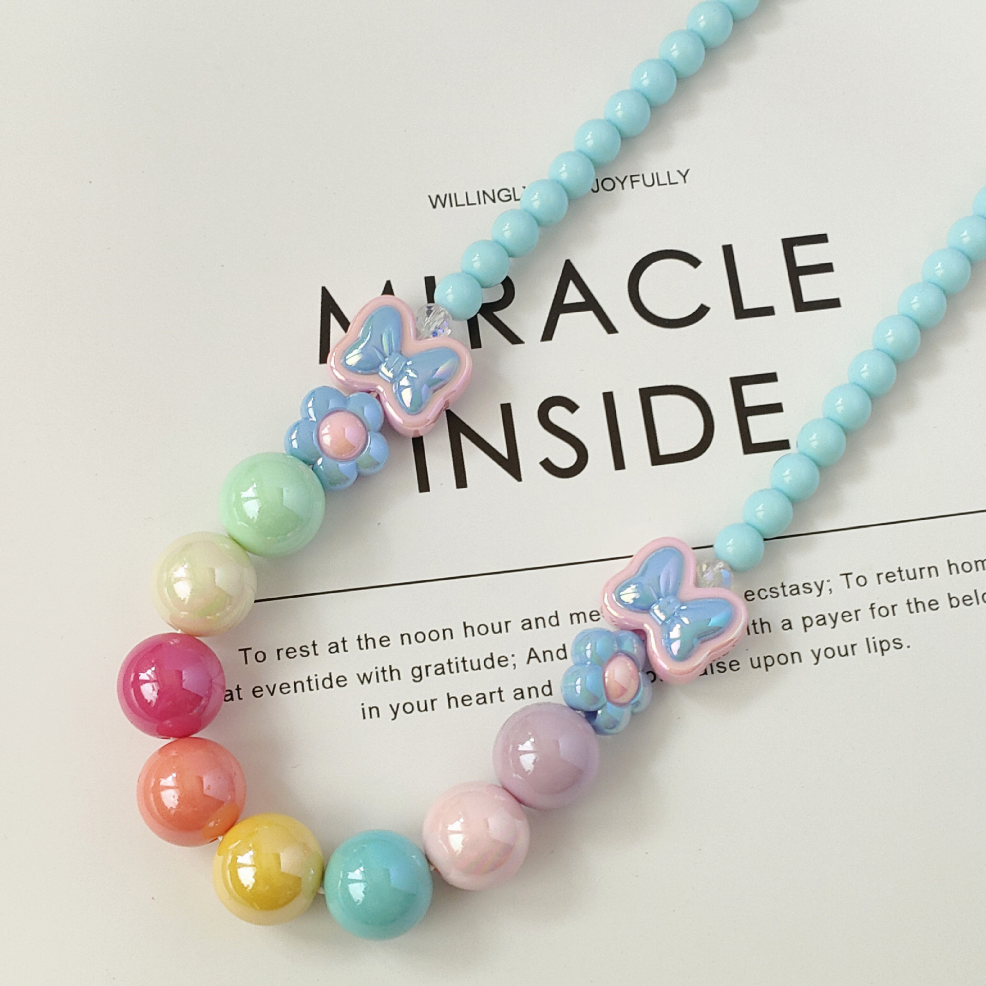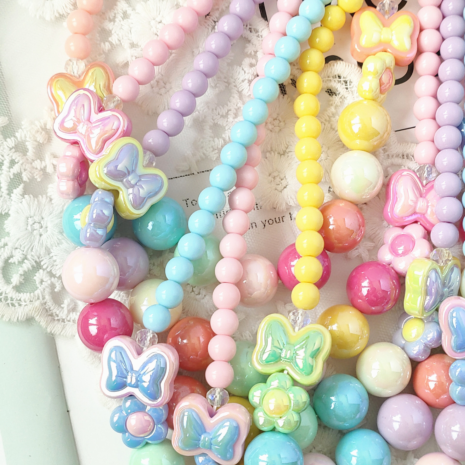New children's sweet cute bow flower necklace bracelet student colorful shiny beaded acrylic jewelry