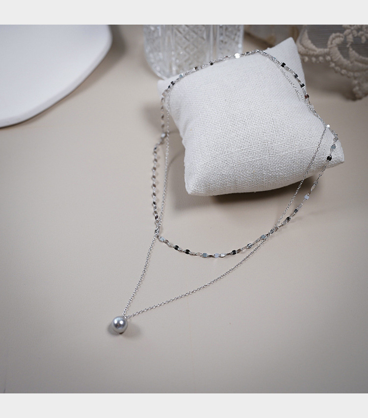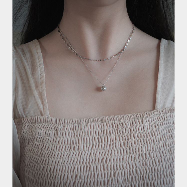 Color: 30504 Gray Pearl lip chain double layer necklace