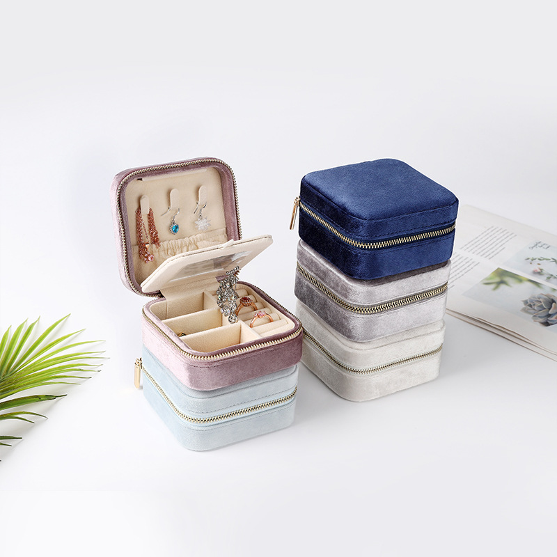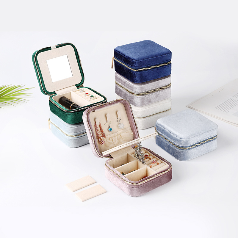 Velvet Compact Portable Women's Zipper Jewelry Storage Box Simple Ring Necklace Storage Box