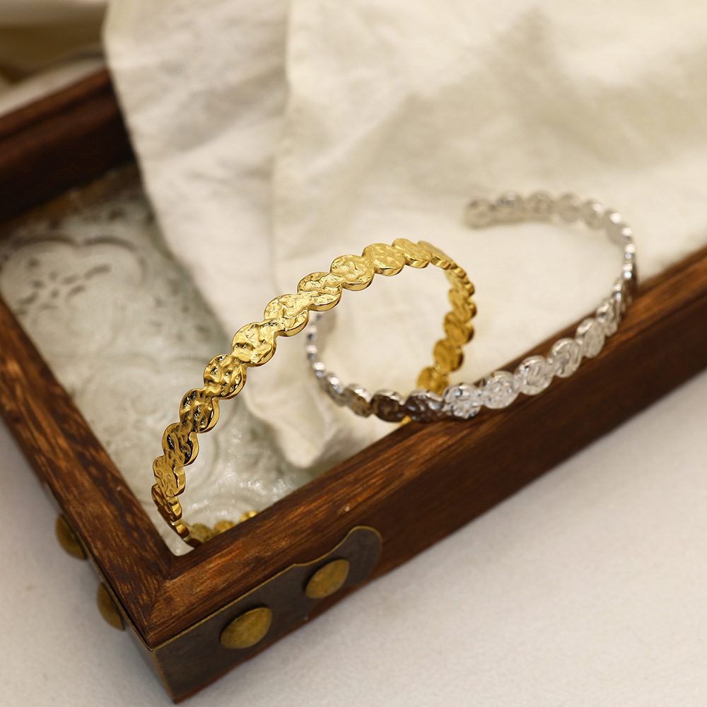 Simple irregular titanium steel bracelet women knock pattern round European and American simple stainless steel open bracelet jewelry wholesale