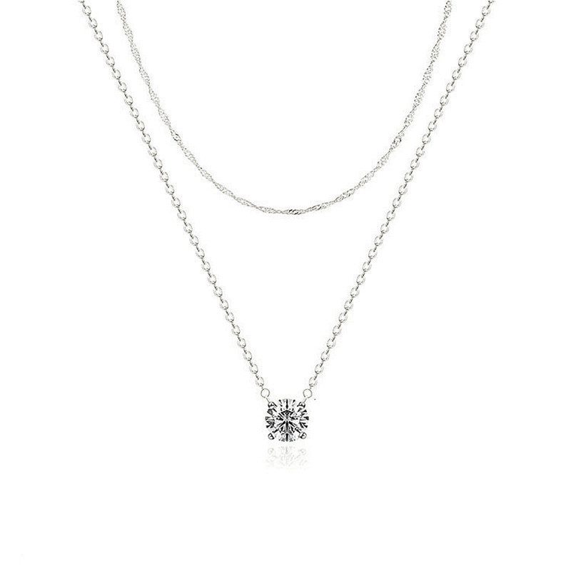 European and American fashion ins Diamond water wave chain clavicle chain women's all-match simple light luxury design zircon double-layer necklace