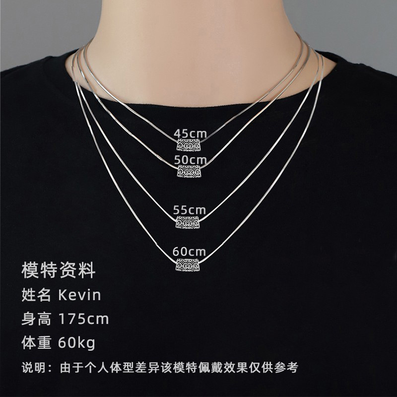Necklace Men's Trendy Snake Bone Chain Simple Silver Chain Men's Retro Pendant Trendy Men's Jewelry Valentine's Day for Boyfriend