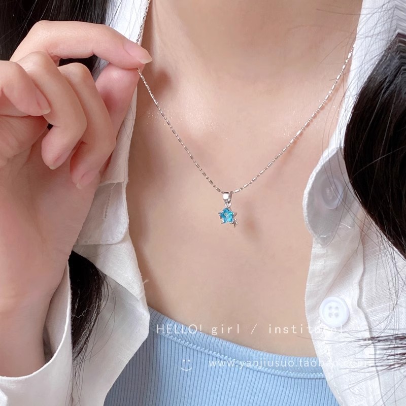 Color: Aquamarine star pendant-x1669 silver