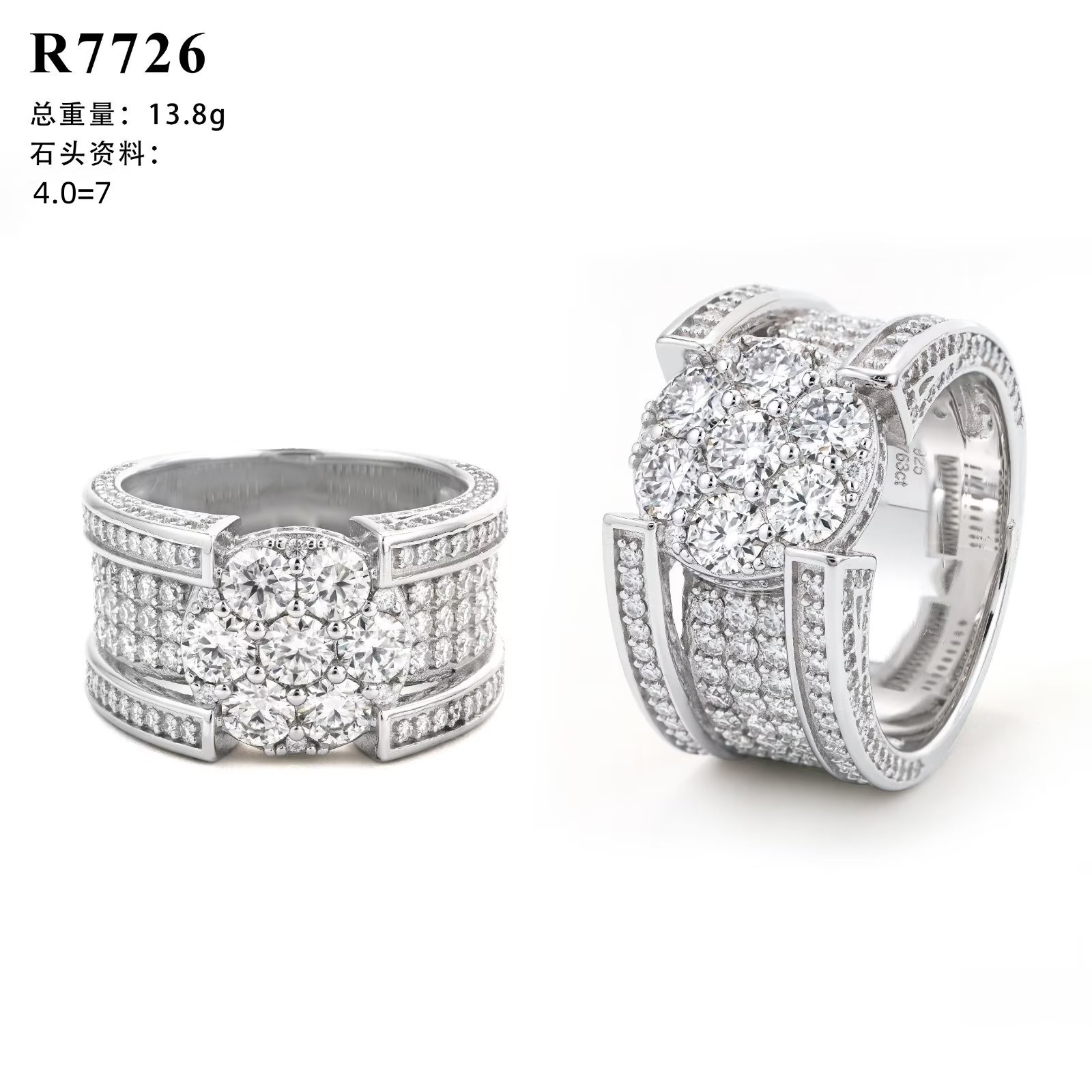 Amazon's Best-Selling European and American Men's Hip-Hop Moissanite Ring Hip-Hop Rap S925 Silver Studded Diamond Ring Hot Style