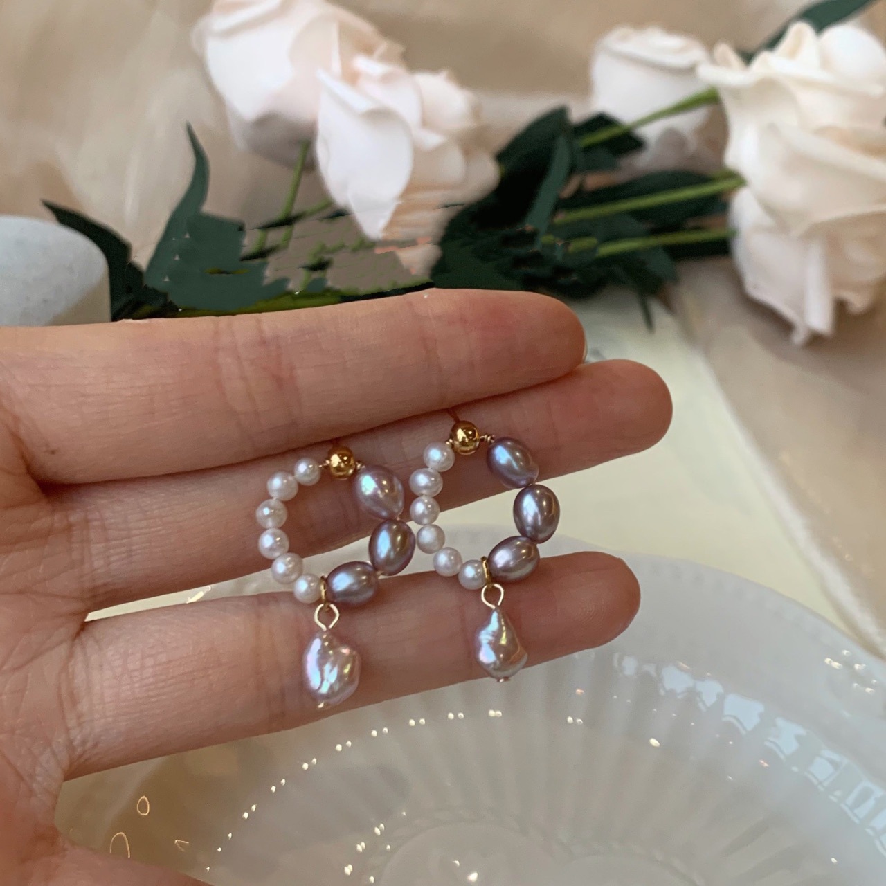 Color: EH31-1 natural freshwater pearl (purple white mix)