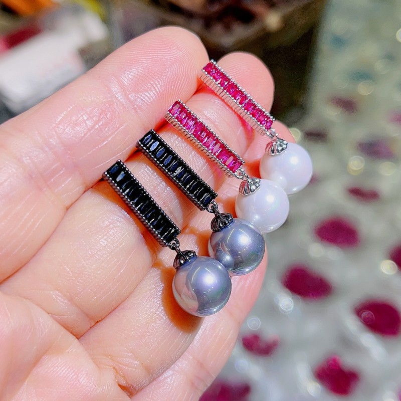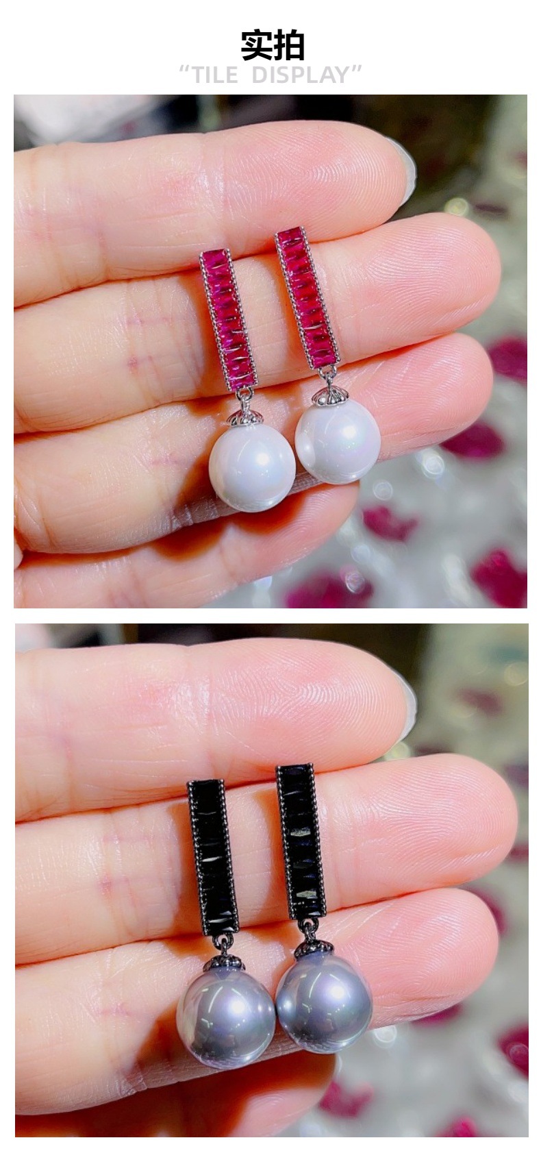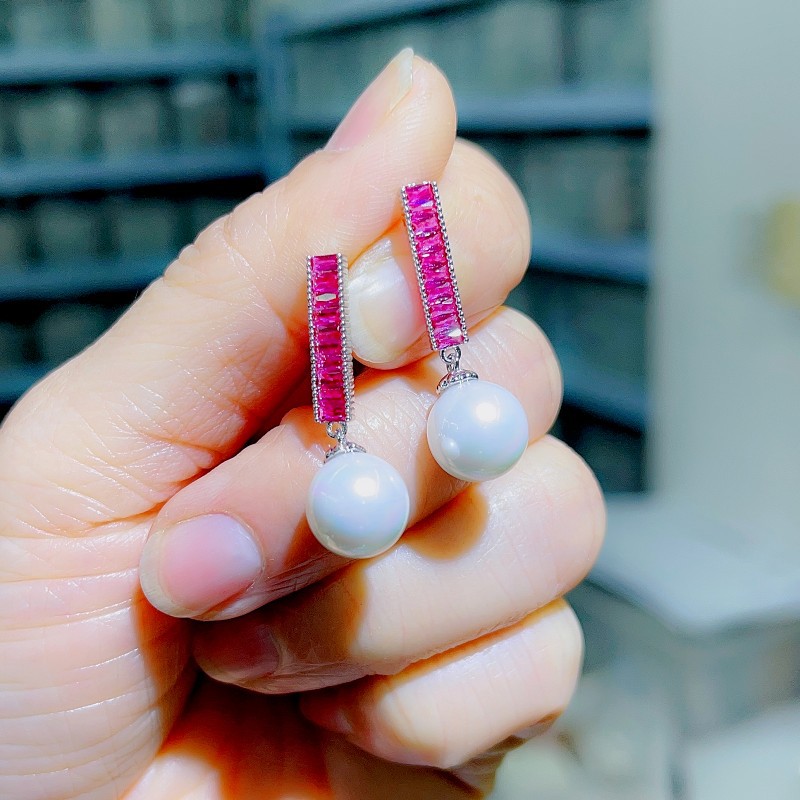 Red corundum 5# inlaid earrings imitation shell pearl earrings geometric design sterling silver earrings ladies simple light luxury gift