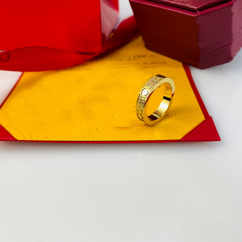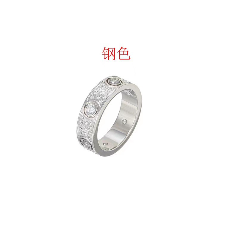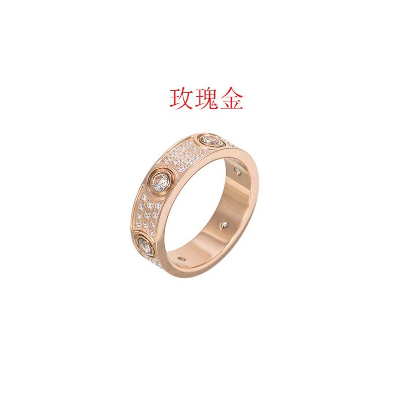 Factory Direct Sales Card Plus Titanium Steel Ring, Two or Three Rows of Diamonds, Wide and Narrow Version, Diamond-Encrusted Gypsophila Rose Gold Couple Ring