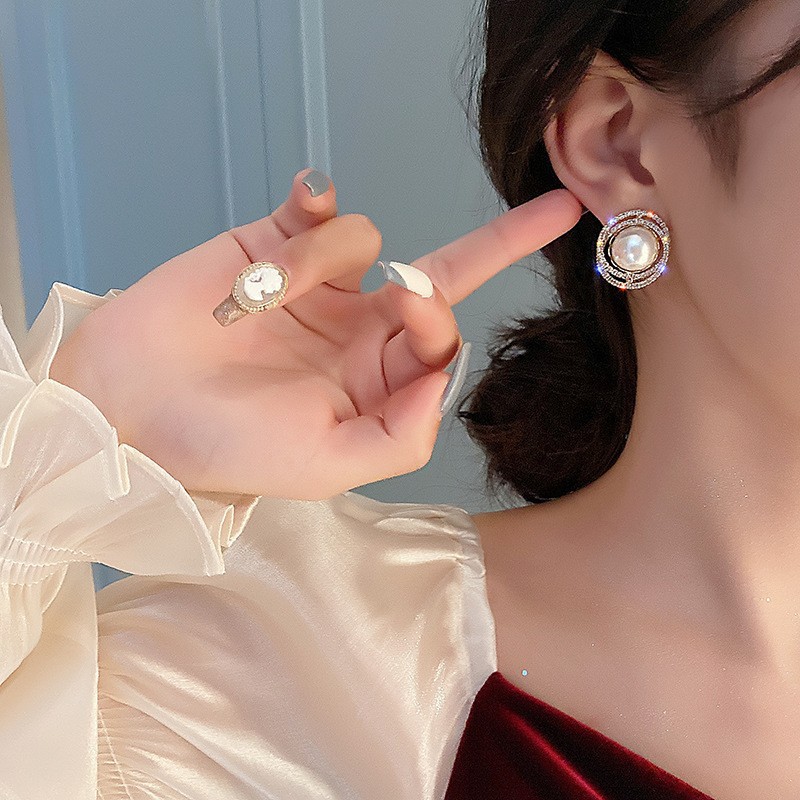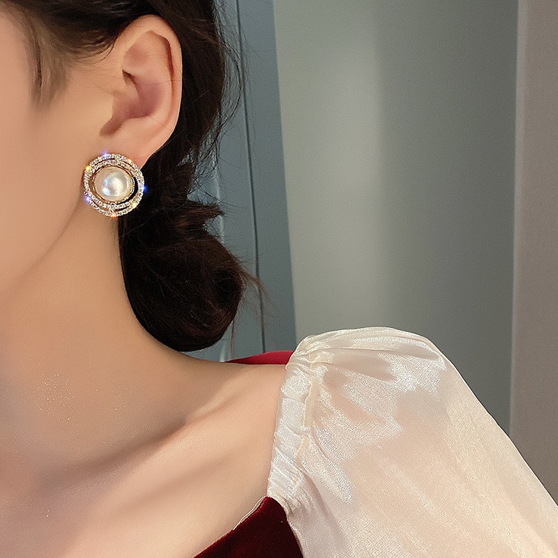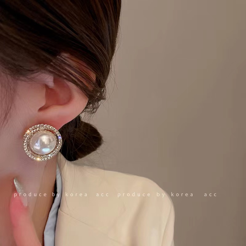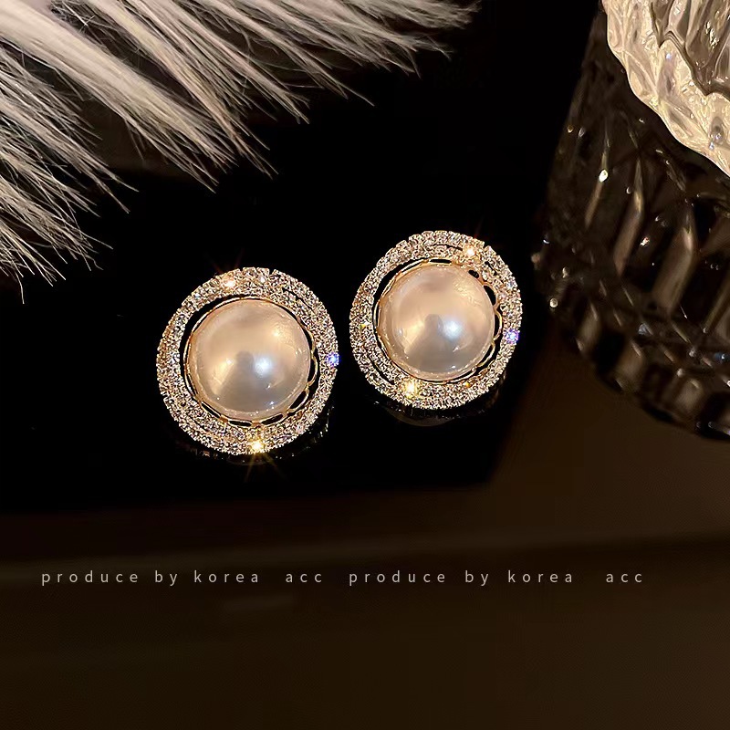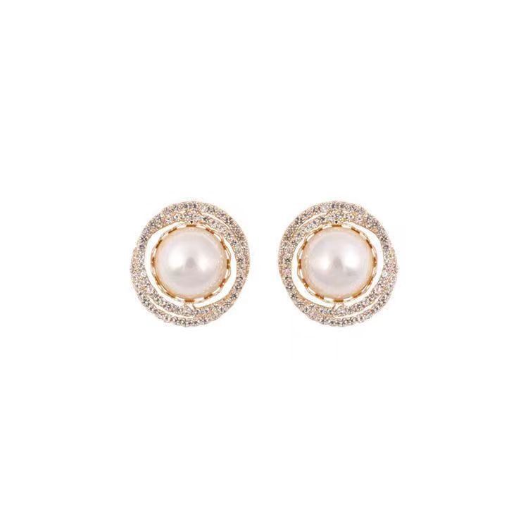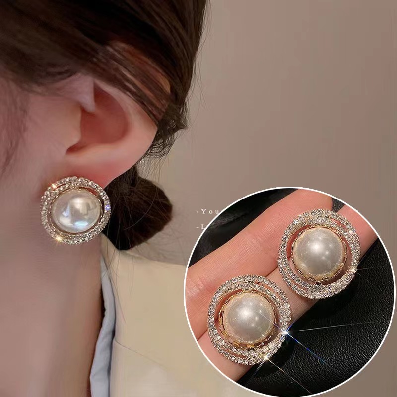 New Fashion Full Diamond Pearl Earrings Women's Fashion Personality Elegant Earrings Women's s925 Silver Pin Internet Celebrity Fashion Jewelry