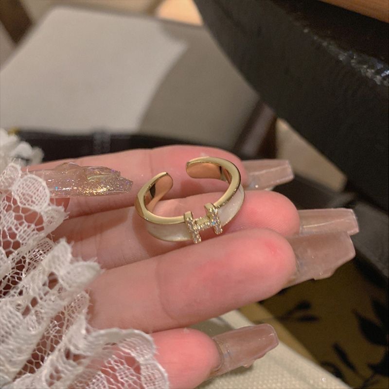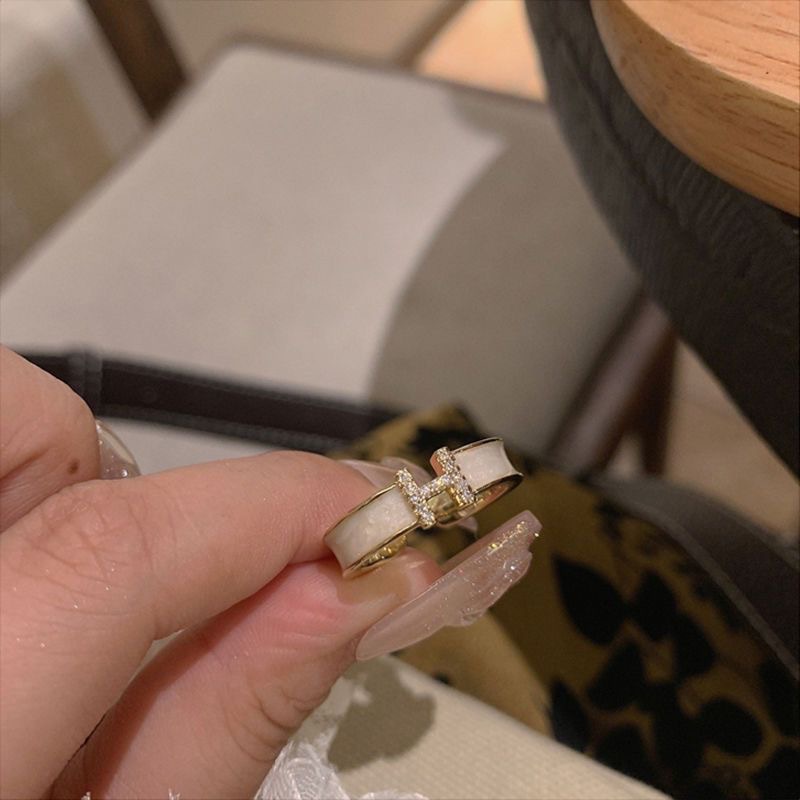 Diamond H Letter Ring Women's ins Niche Design Fashionable Personalized Opening Adjustable Advanced Sense Simple Finger Ring