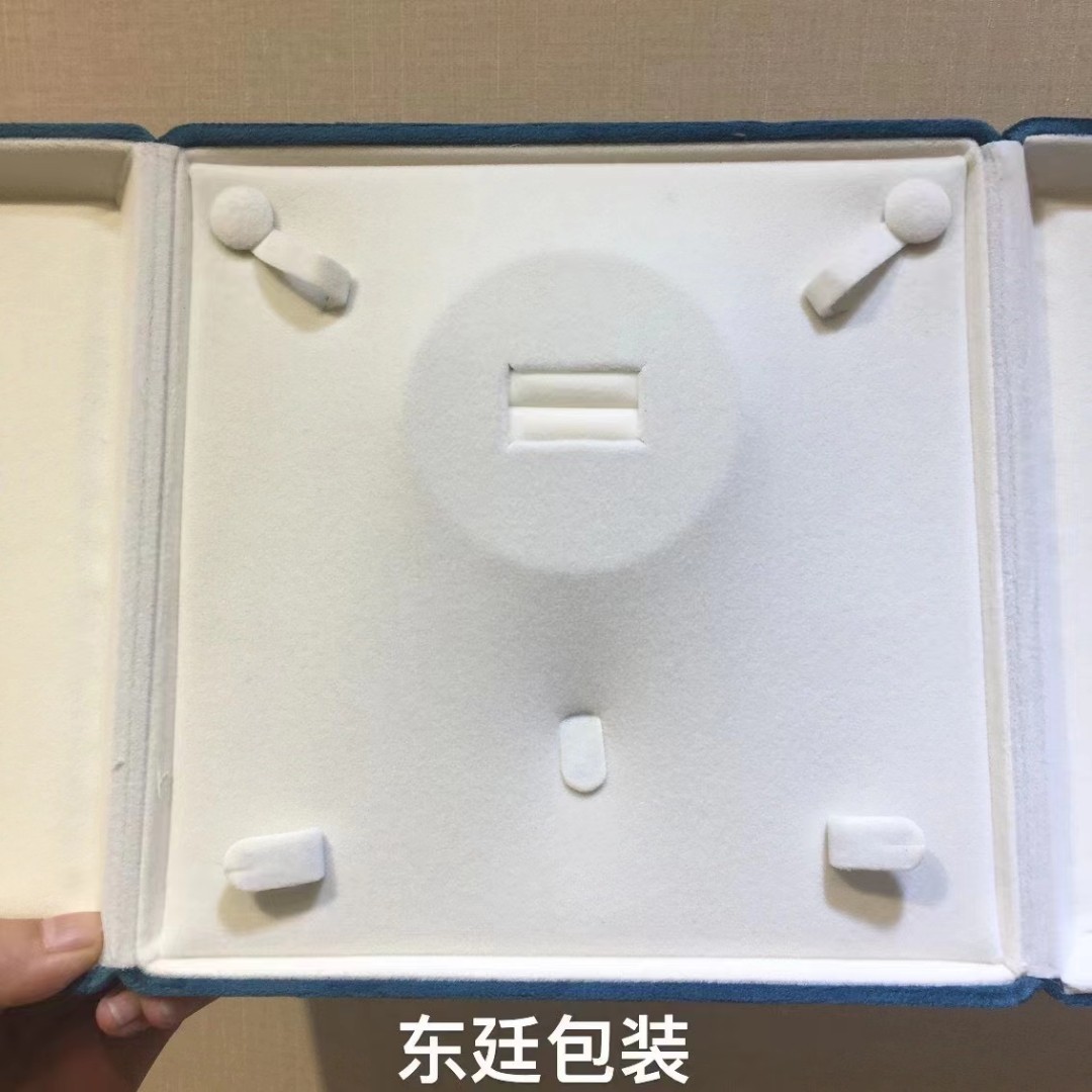 Double Opening Peacock Blue Velvet Mother's Day Pearl Ring Earrings Brooch Necklace Jewelry Set Box