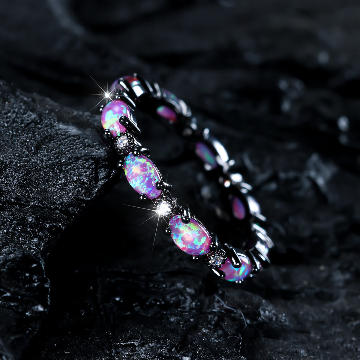 Color: Black gold purple opal