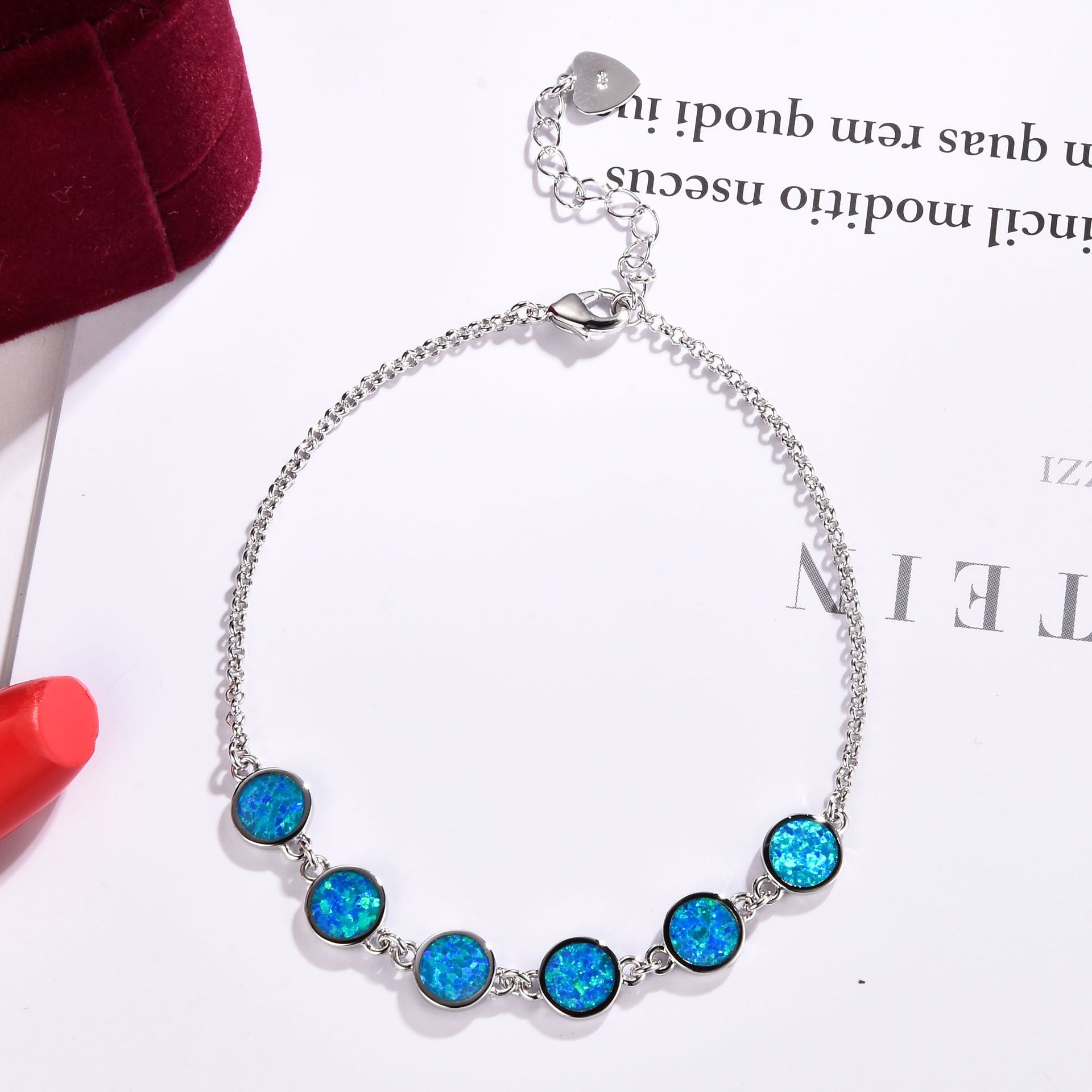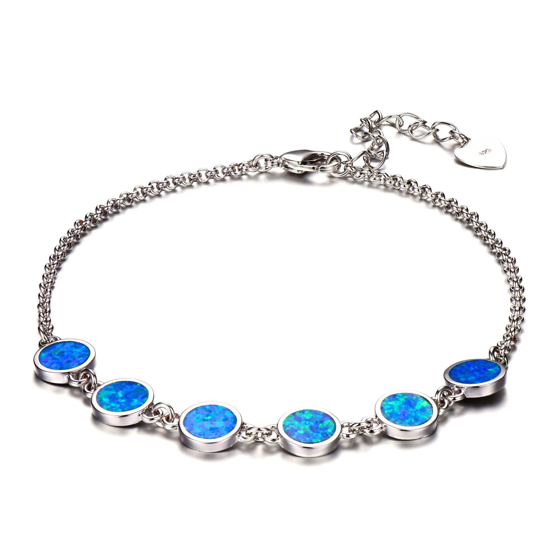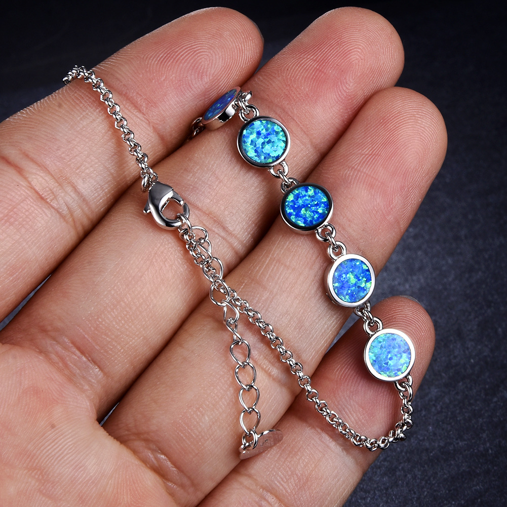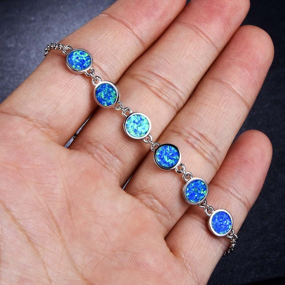 European and American Amazon Fashion 925 Blue Round Opal Adjustable Bracelet Personalized Fashion Women's Bracelet