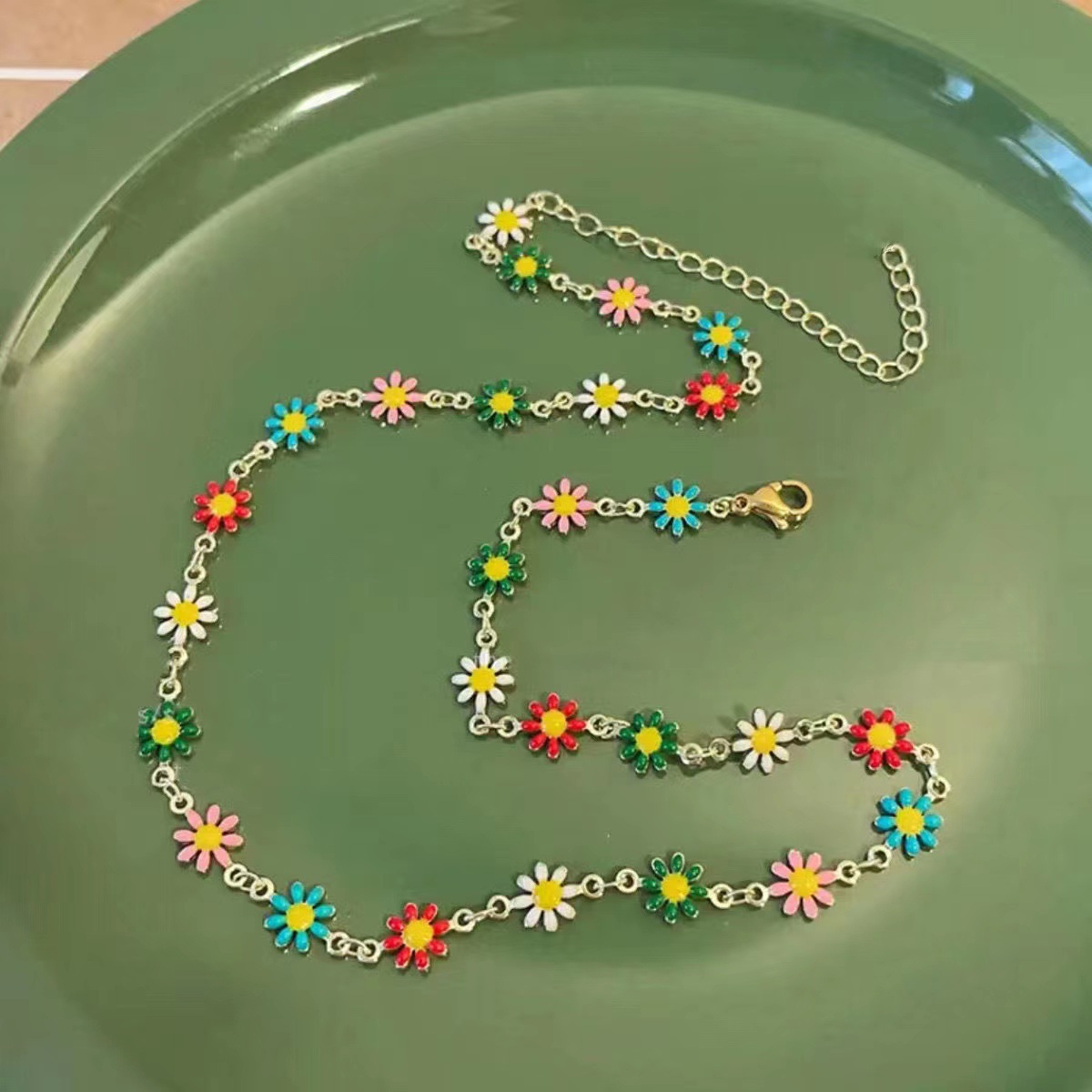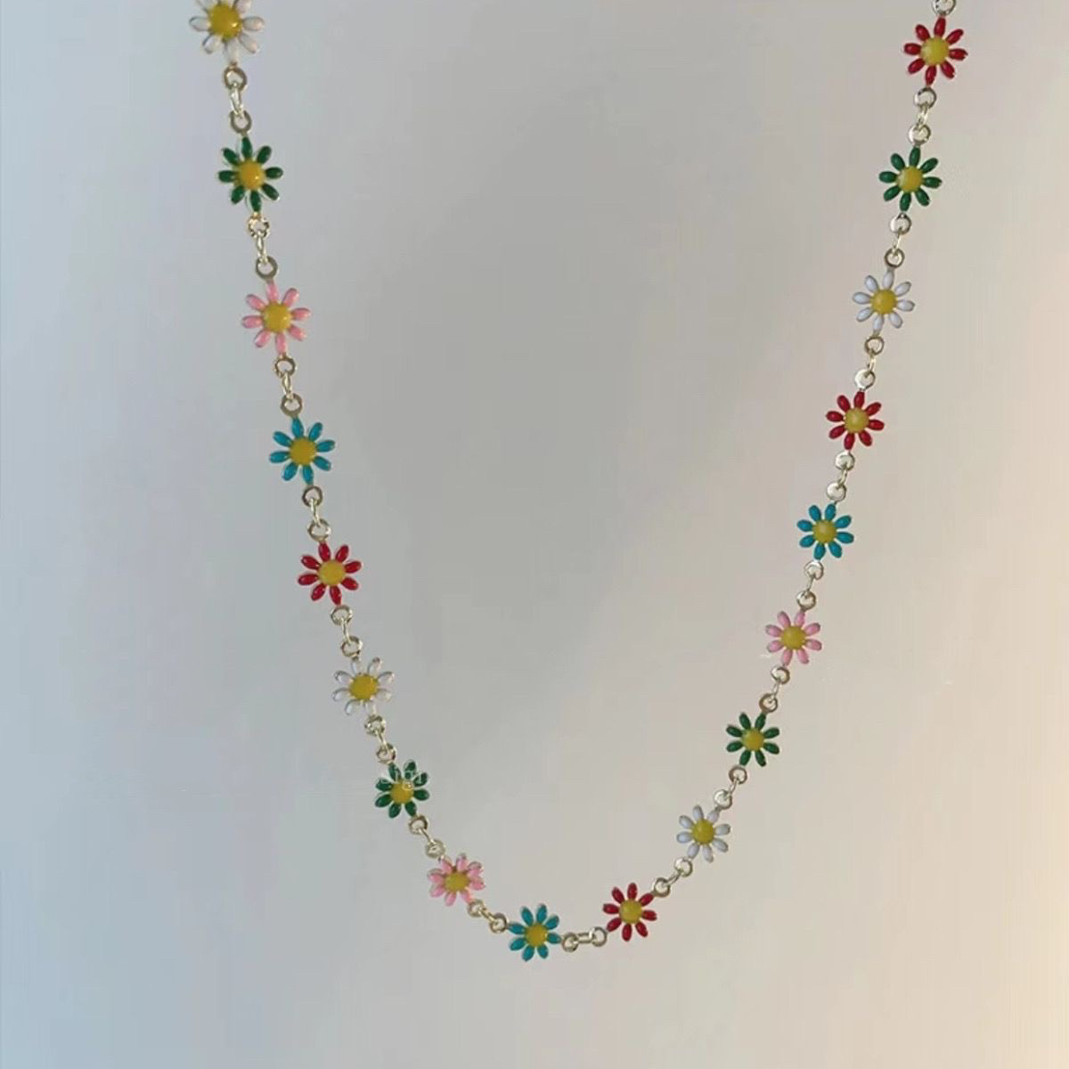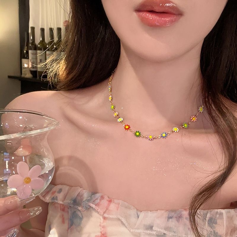 Fresh Daisy ~ Colorful Flower Necklace Women's Light Luxury Niche Design Clavicle Chain Summer Girl Necklace Chain