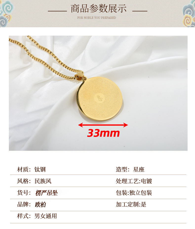 Retro Titanium Steel Luranga Curse Pendant Simple 18k Necklace Men's Guofeng Pendant Women's Jewelry Small Wholesale Edge