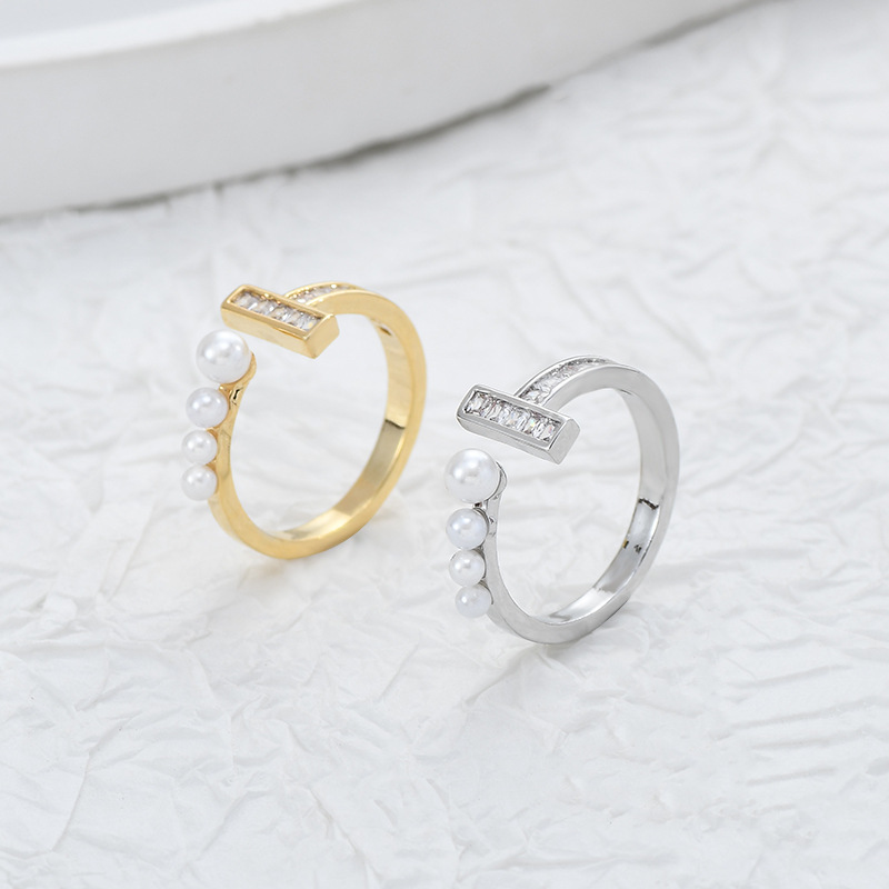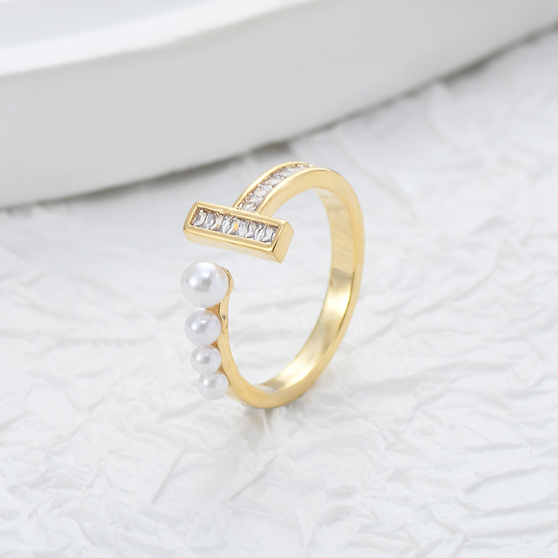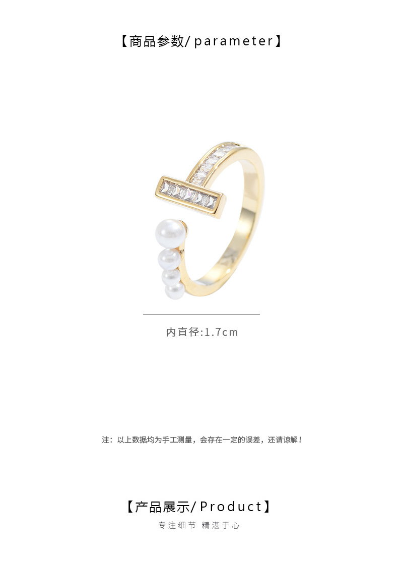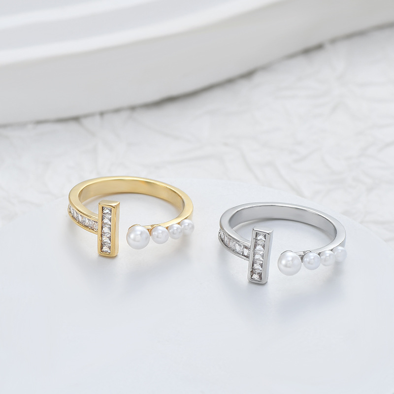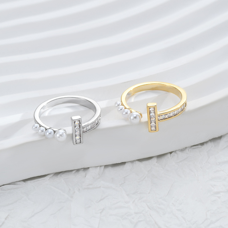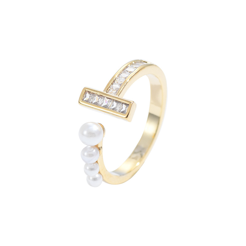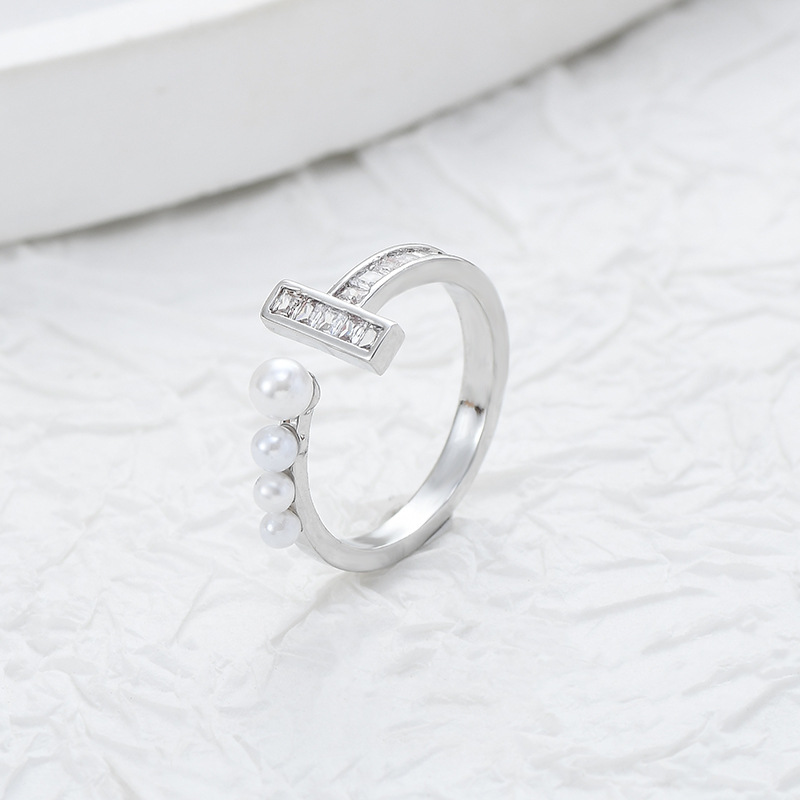 French Retro Zircon Pearl Open Ring Women's Korean-style Simple Personality All-match Elegant Fashion Ring Ring