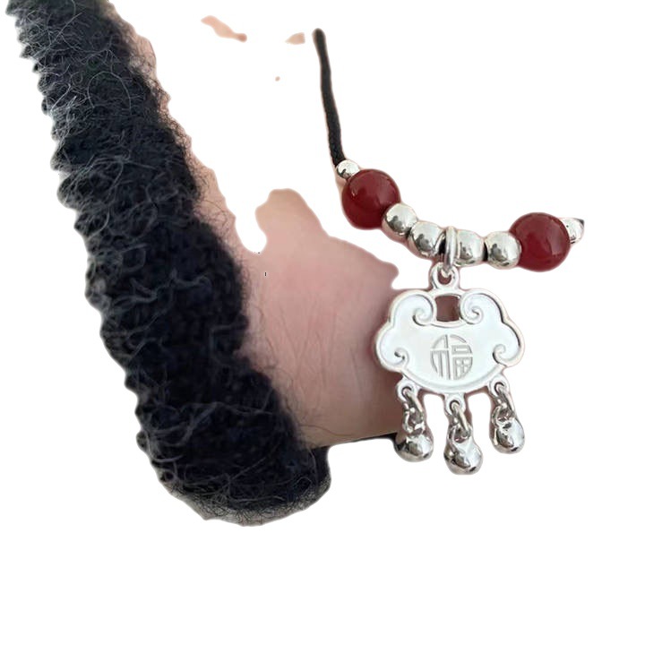 New Chinese Necklace ins Student Best Friend Peace Lock Ethnic Style Handmade Woven Long Life Lock Bell Pendant Explosions