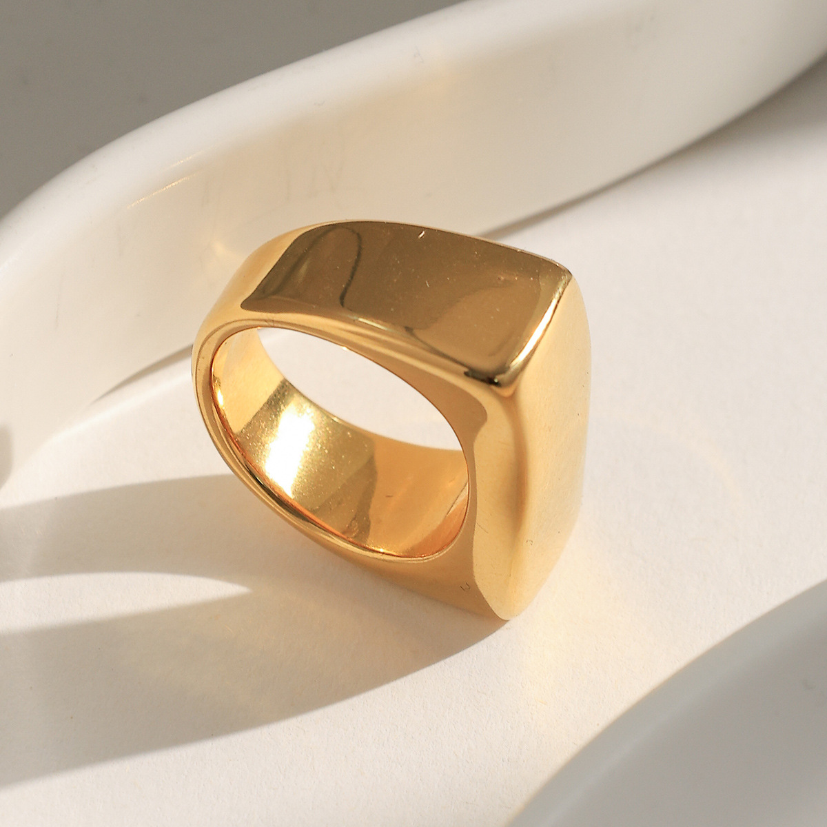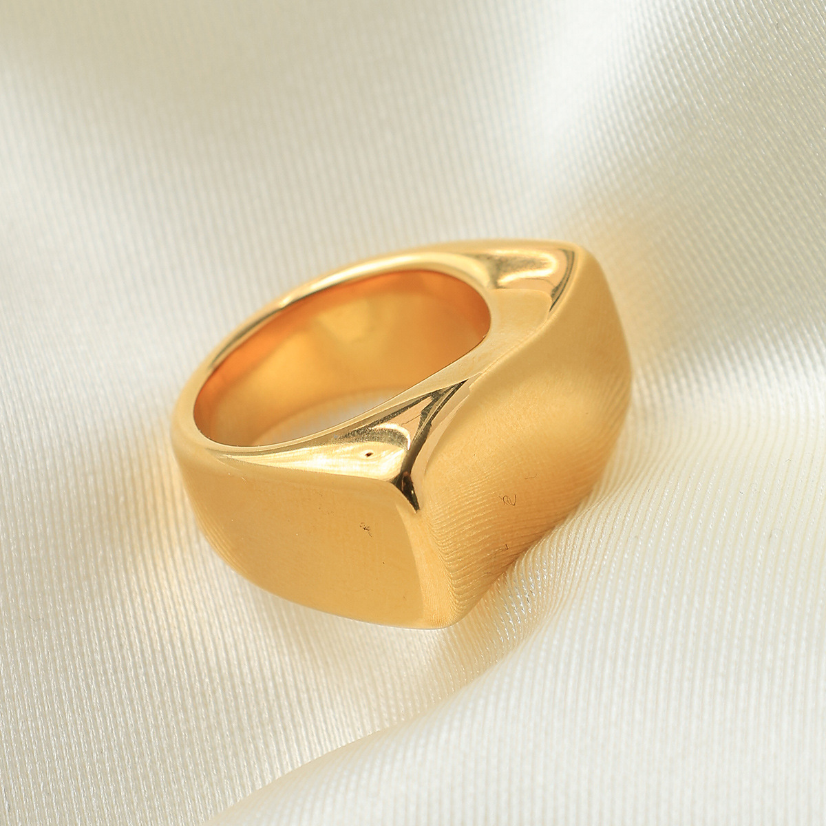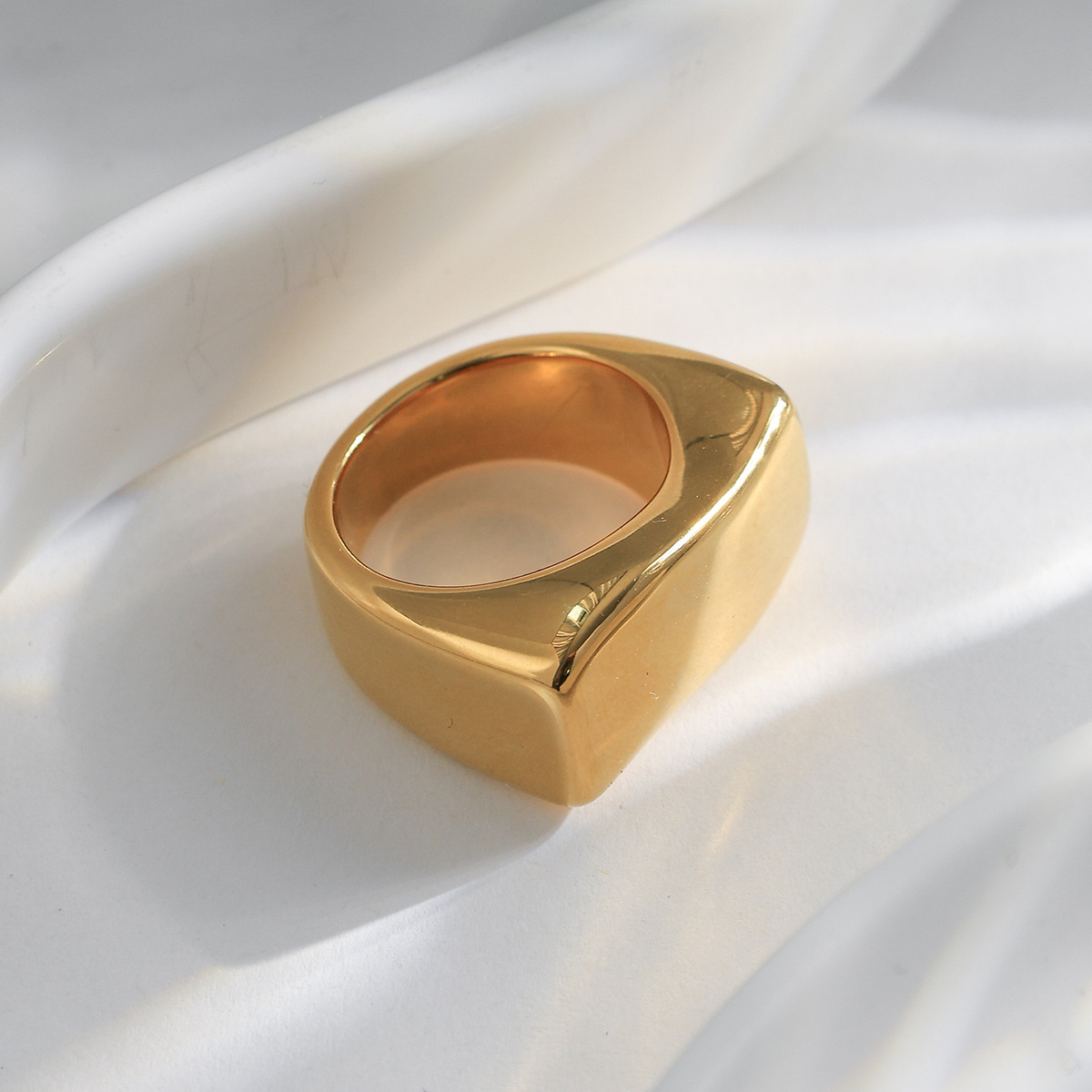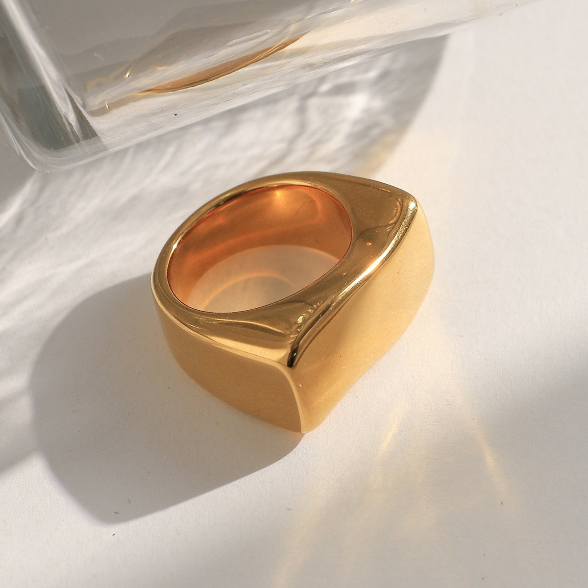 Fashionable Vintage Style Thick Stainless Steel Ring with Wavy Quadrilateral Geometric Design, Simple Gold-Plated Women's Jewelry Wholesale