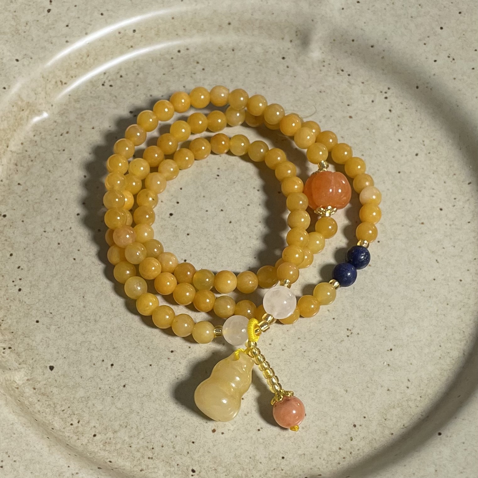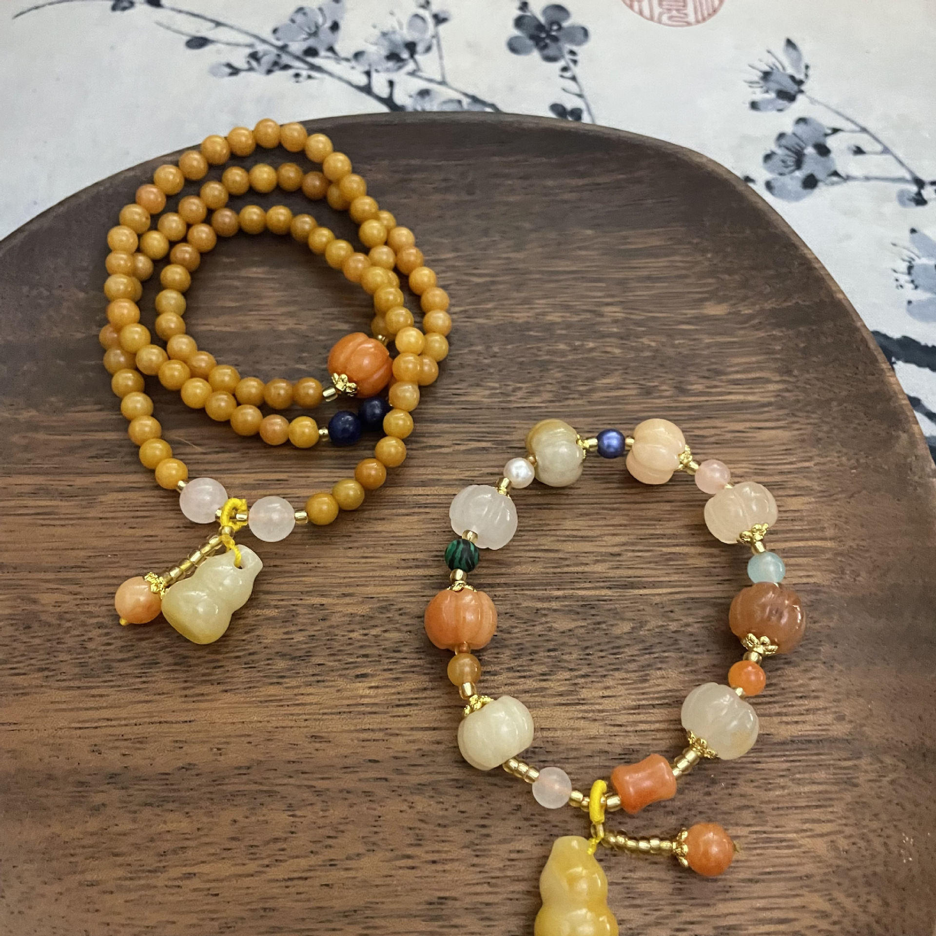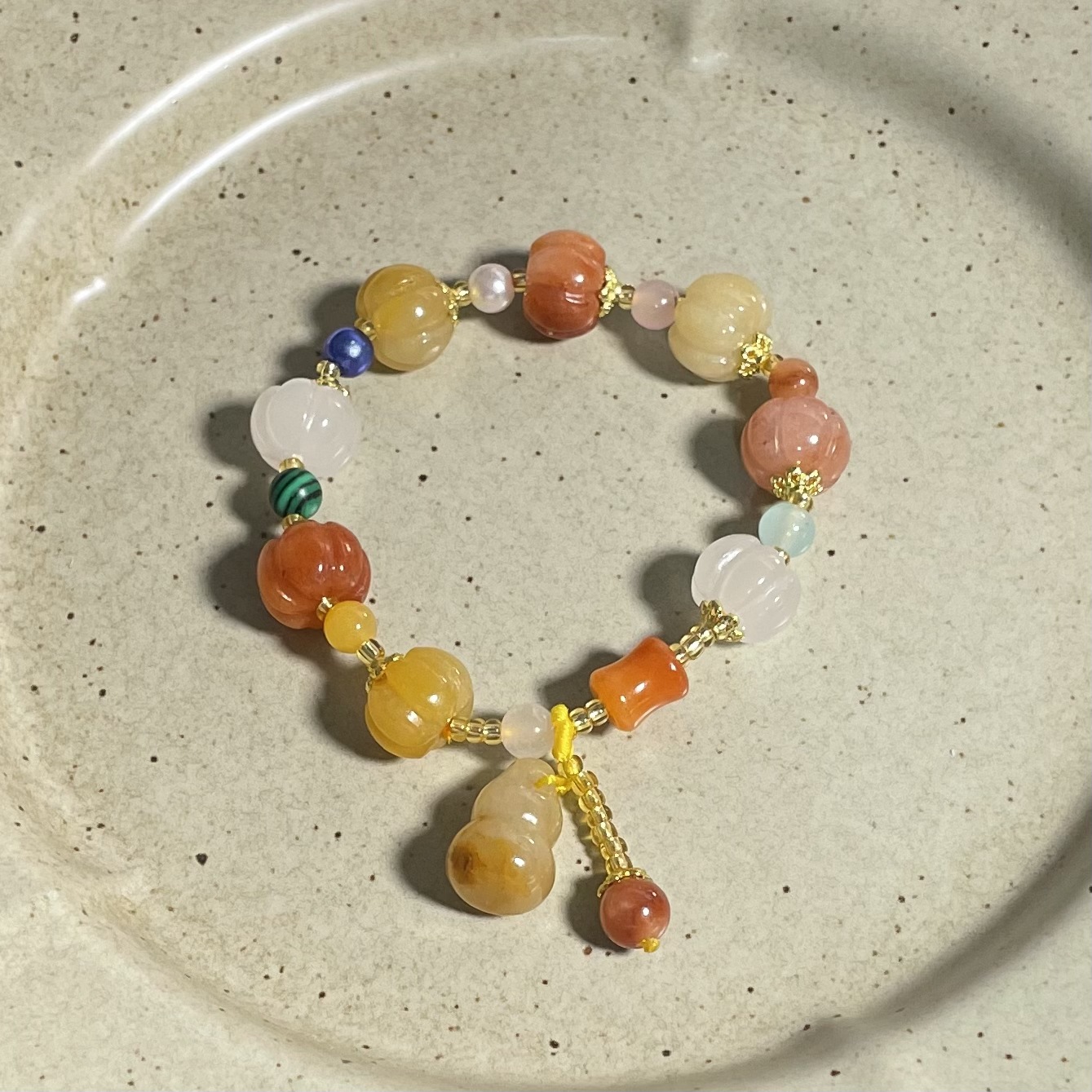 Chinese Style Folk Folk Style Pumpkin Natural Stone Topaz Beaded Bracelet Elastic Plate Niche Design Elegant Women