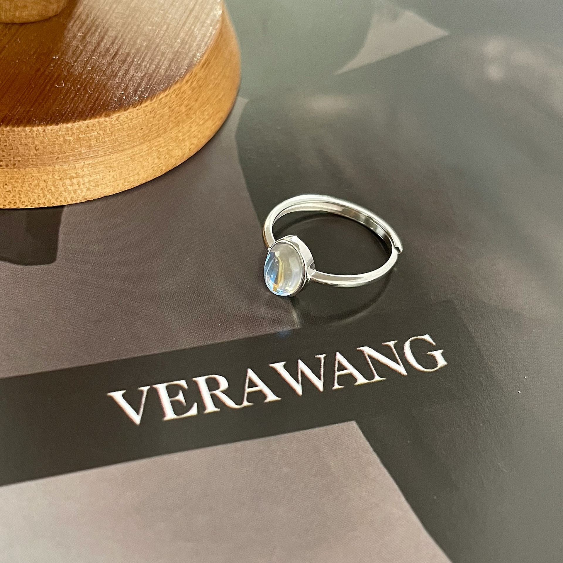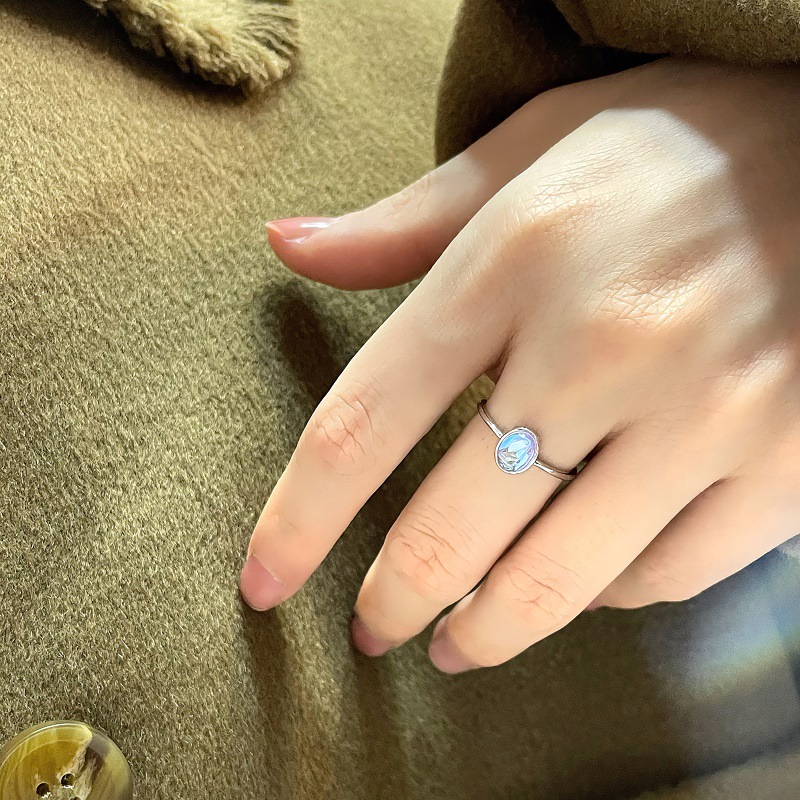 925 Sterling Silver Sea Blue Moonstone Ring Ocean Teardrop Live Mouth Ring Jewelry Elegant Clear Jewelry