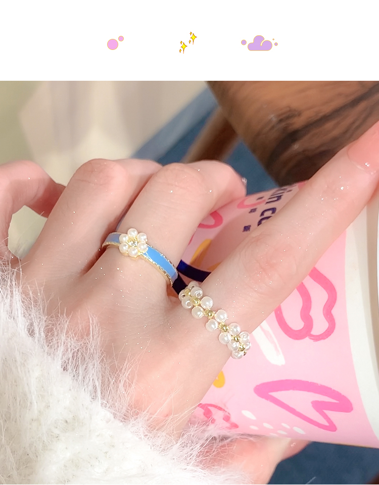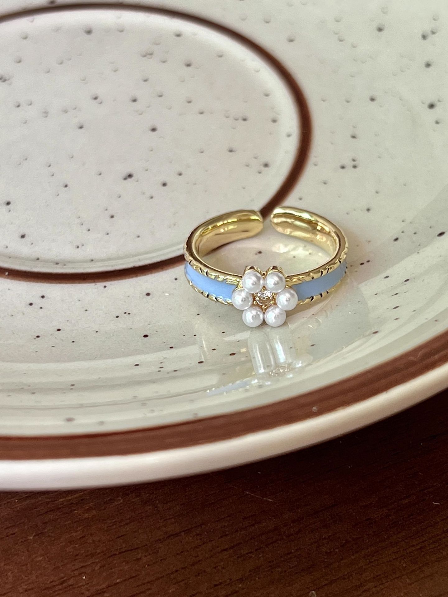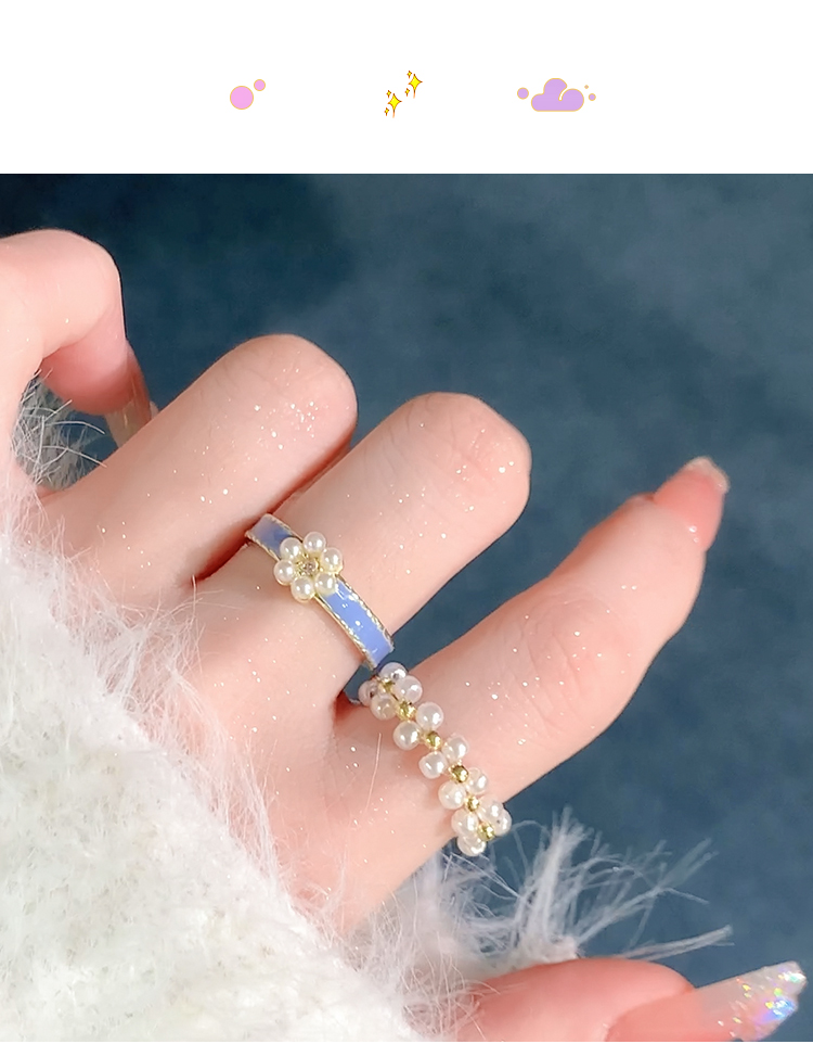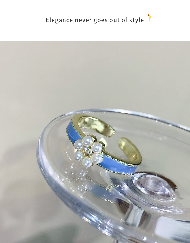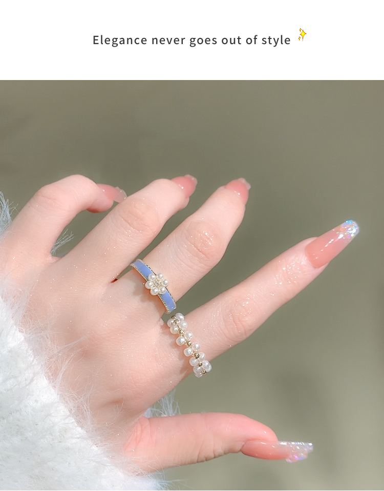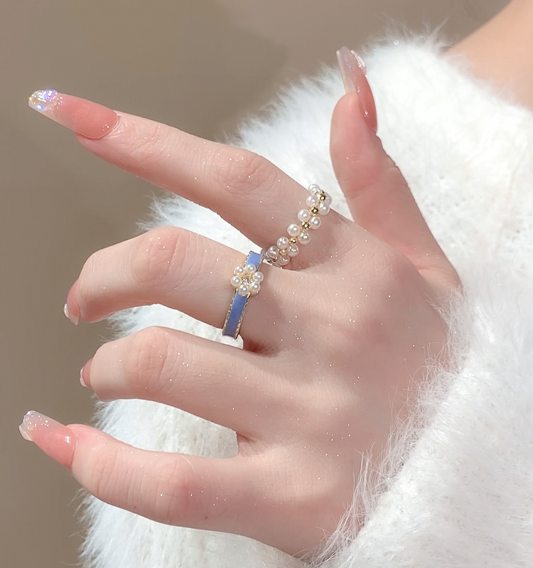 Blue epoxy pearl ring female niche design Open index finger ring female fashion personality French tail ring ring