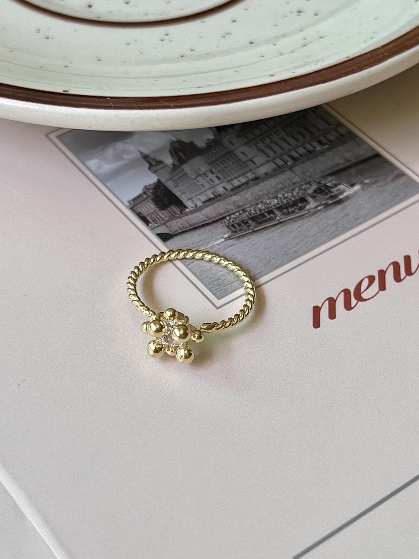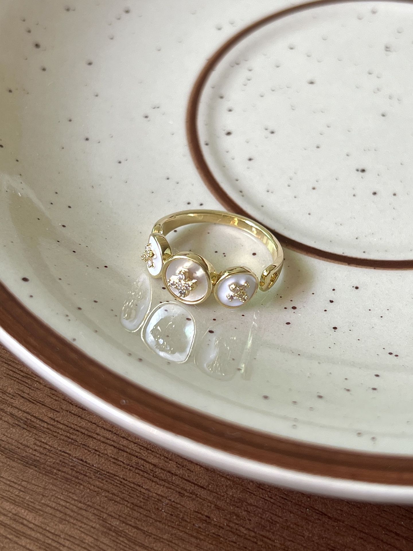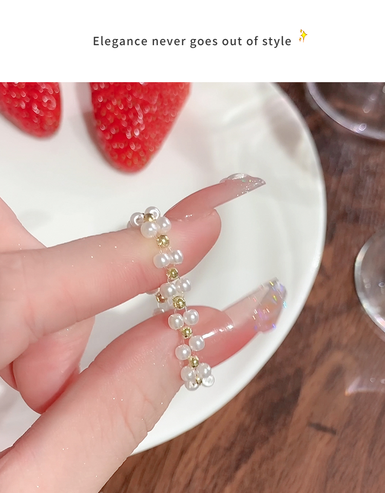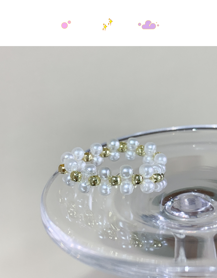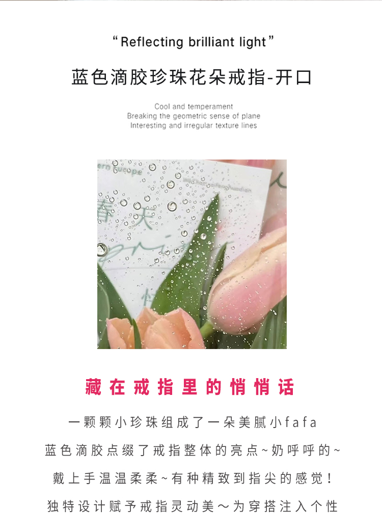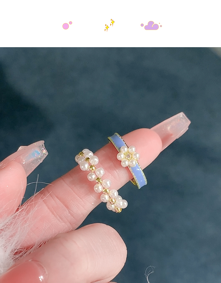Blue epoxy pearl ring female niche design Open index finger ring female fashion personality French tail ring ring