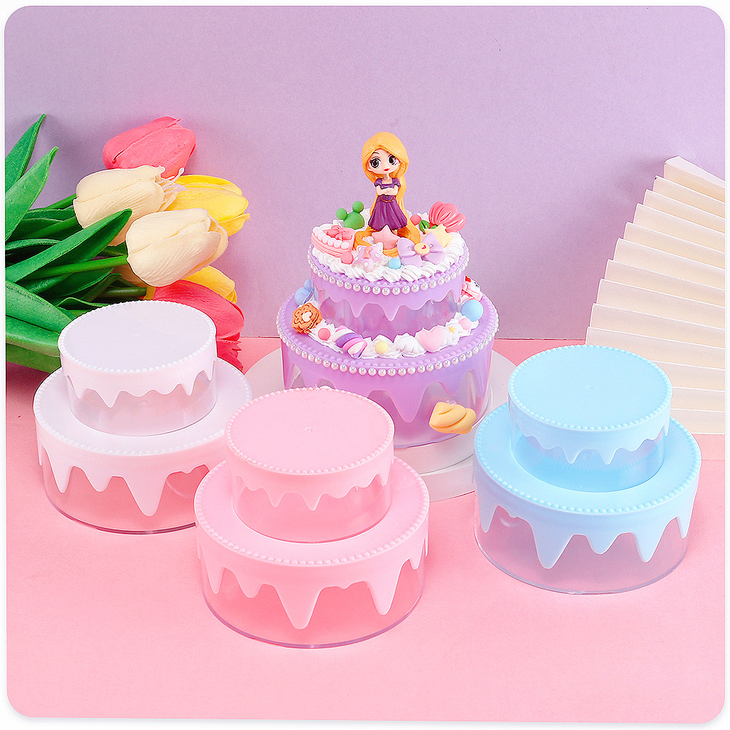 Round Two-Layer Desktop Storage Box Kidsren's Plastic Creative Cake Shape Handmade DIY Material Material Ins Style