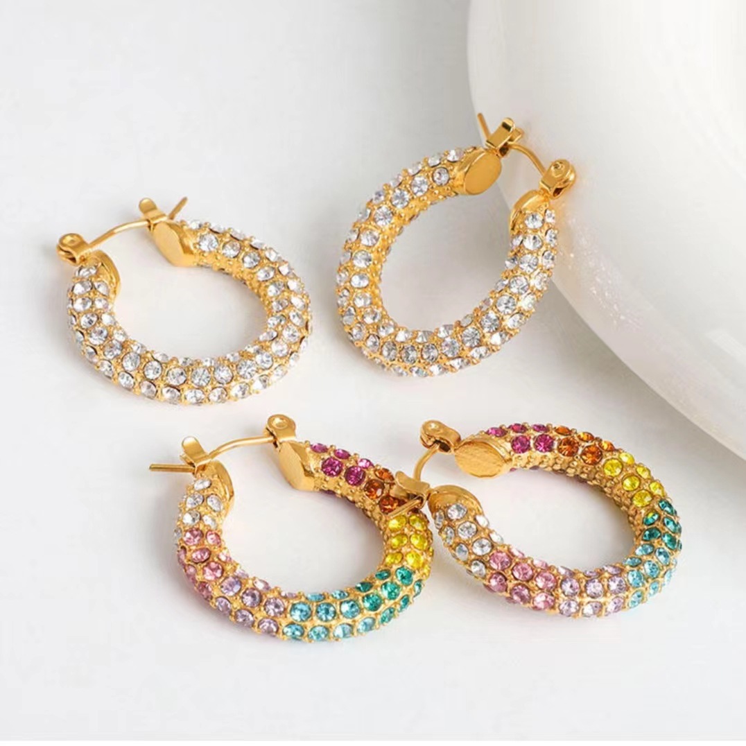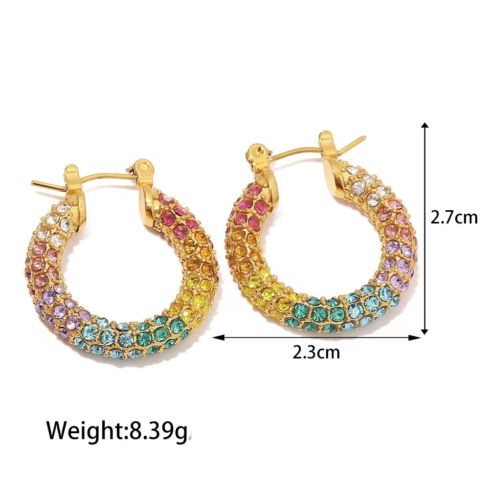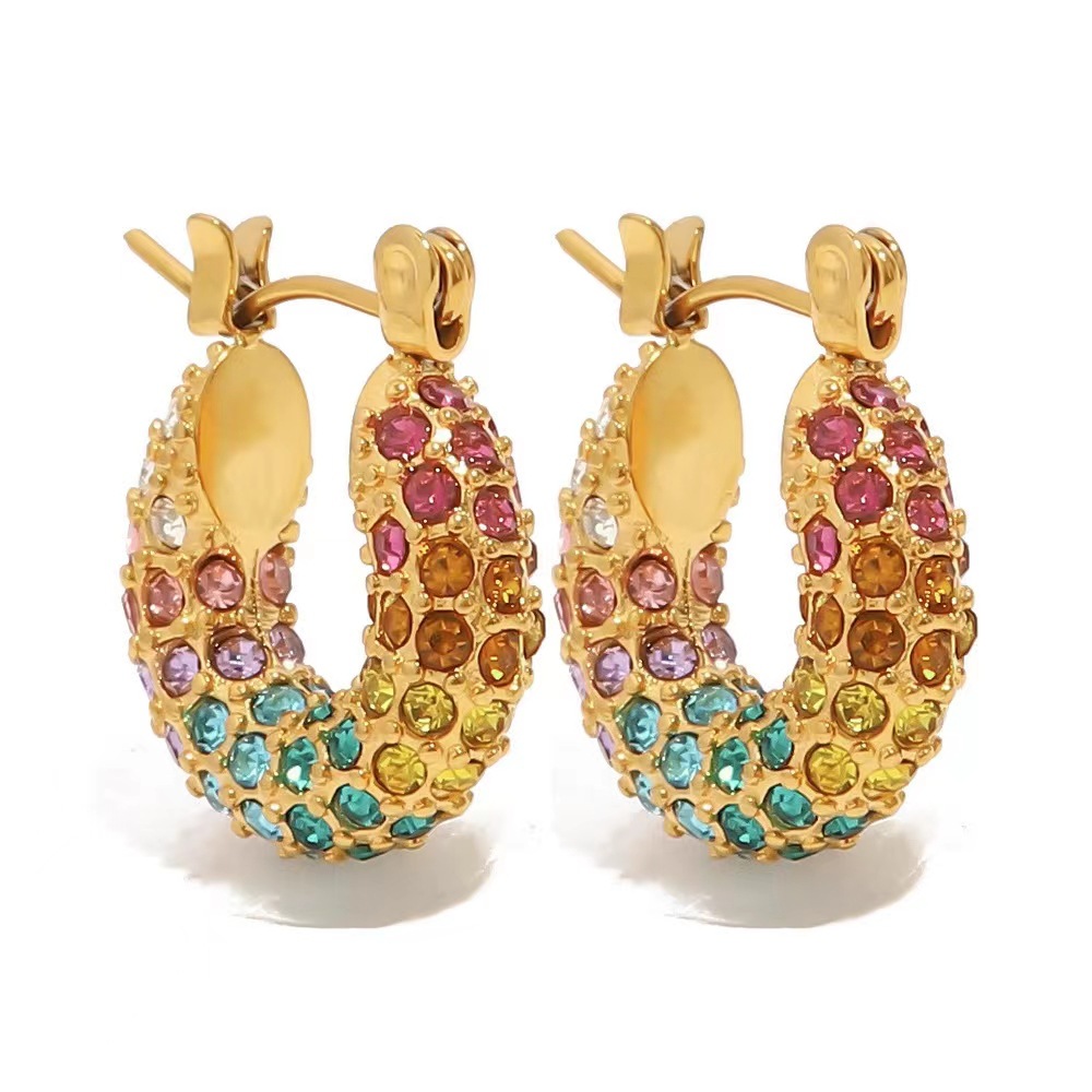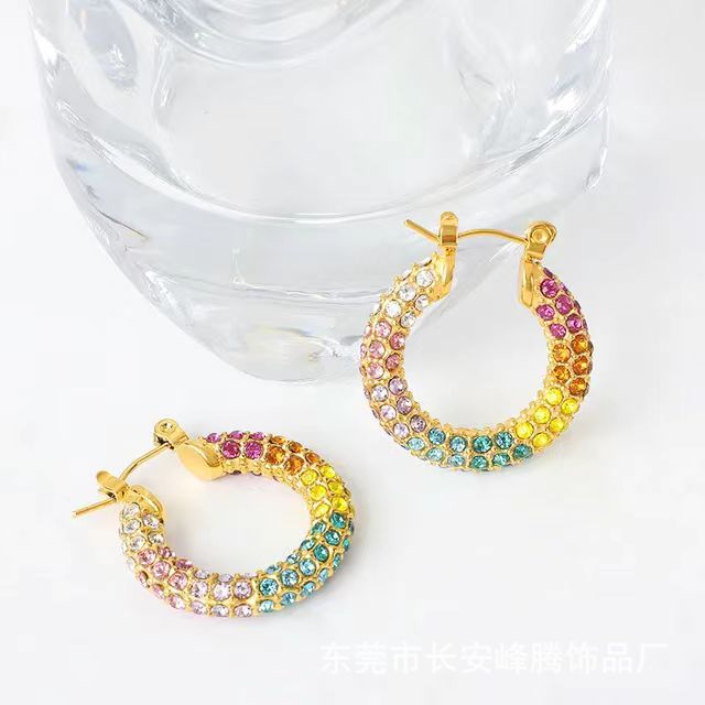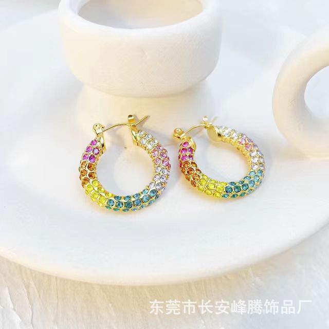 European and American Internet Celebrity ins New 18K Gold-plated Micro-inlay Colorful Diamond Earrings Design Sense Fashion Trend All-match Earrings
