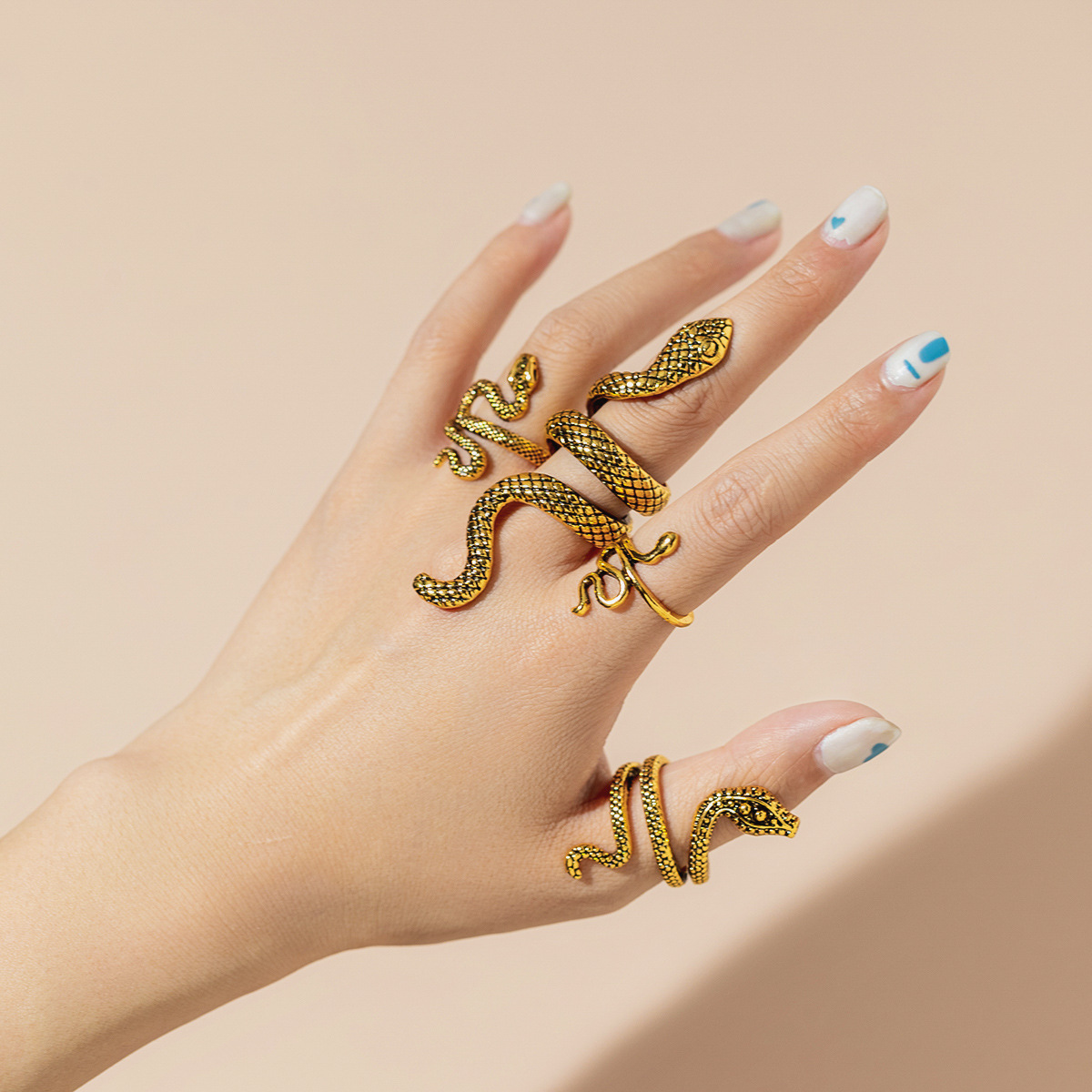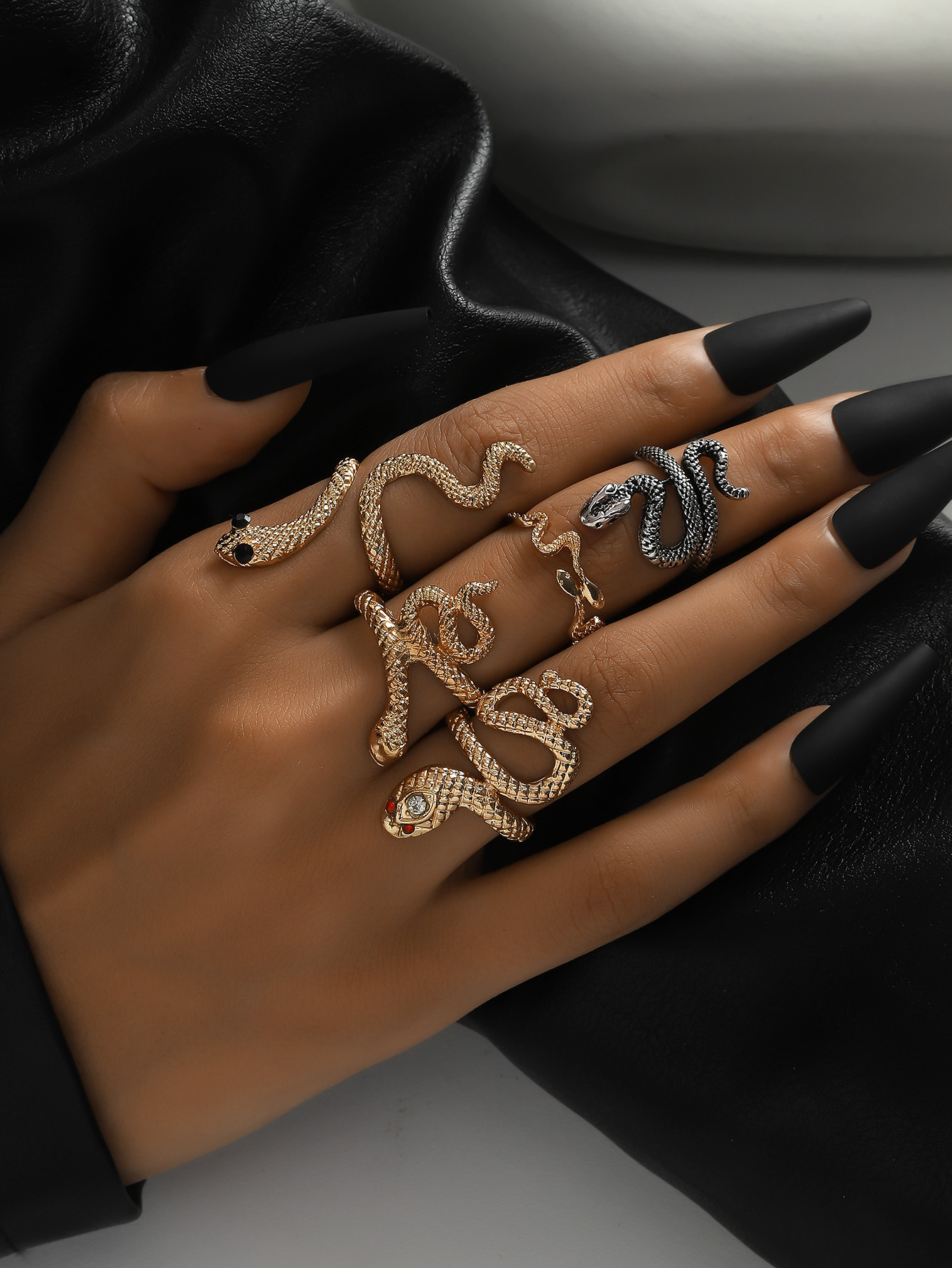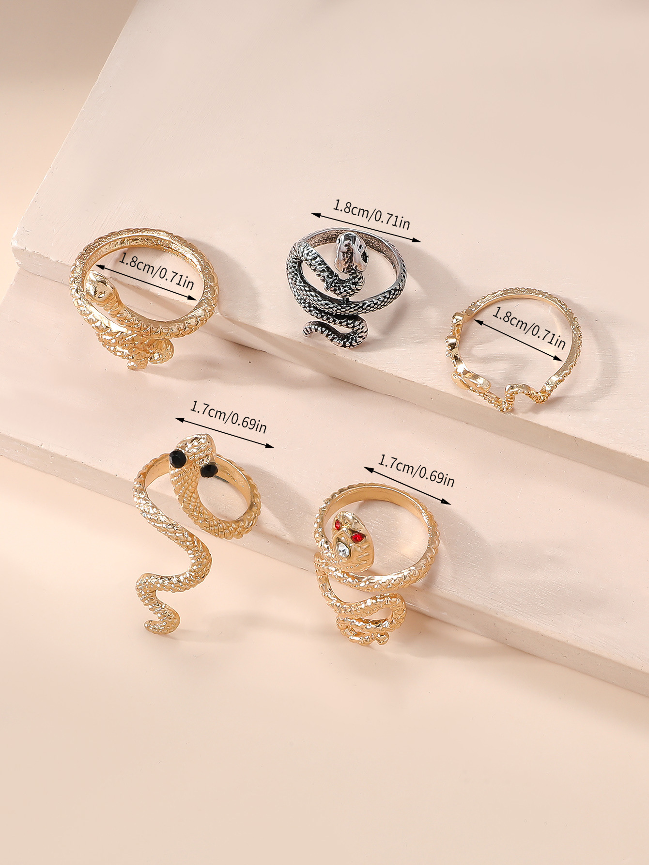Color: 5-piece Gold and Silver Snake suit Ring {20g}