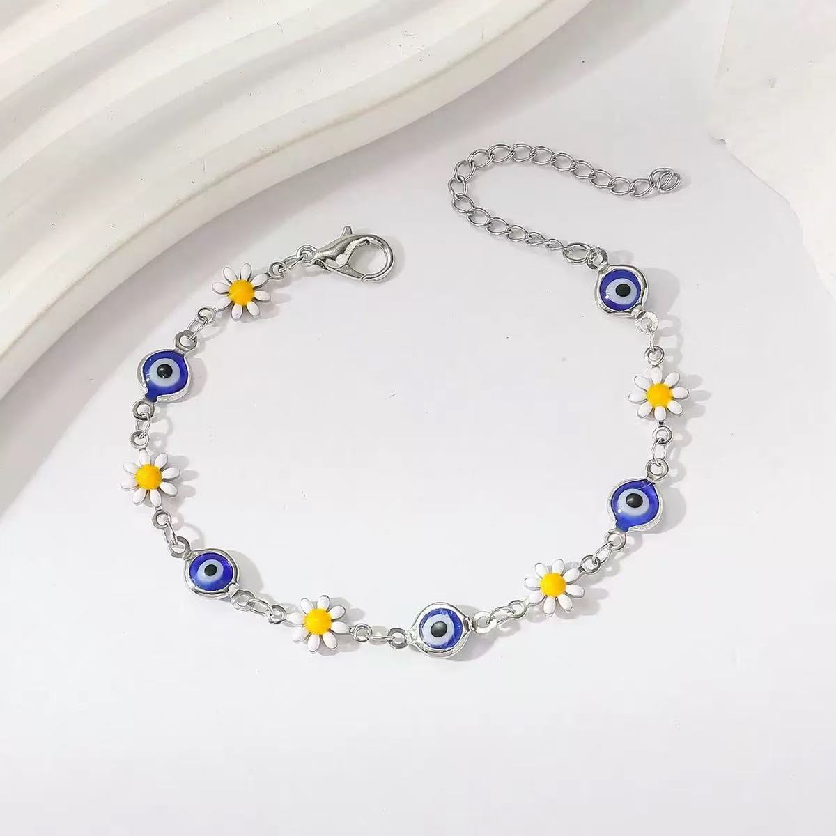 Color: Blue devil's eye white silver bracelet