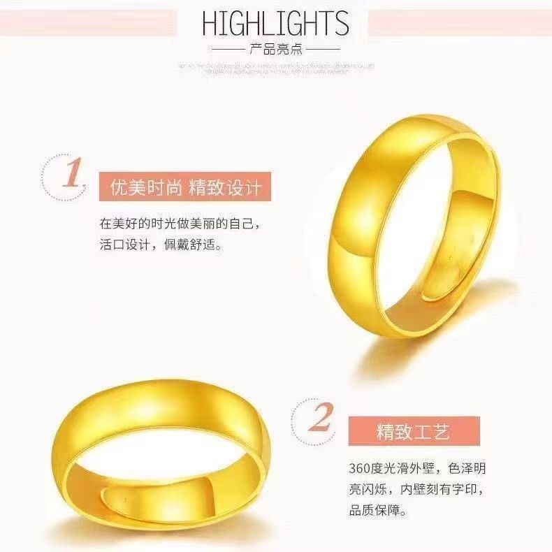 Sand Gold Jewelry Men's and Women's Rings Wide Plain Band Smooth Surface Couple Rings Fashionable Simple Imitation Gold Jewelry Wholesale