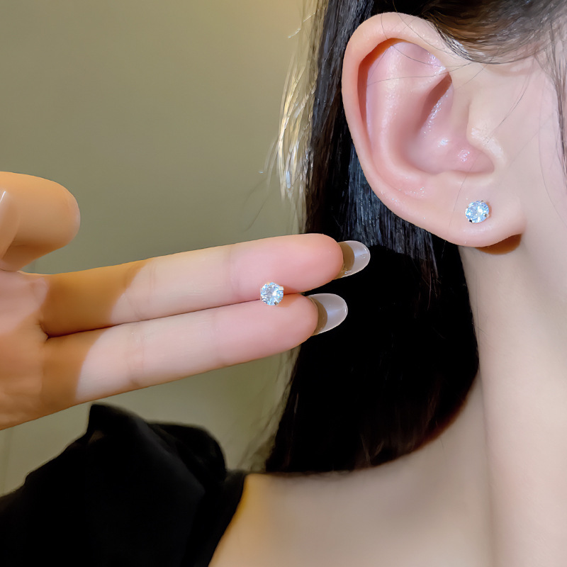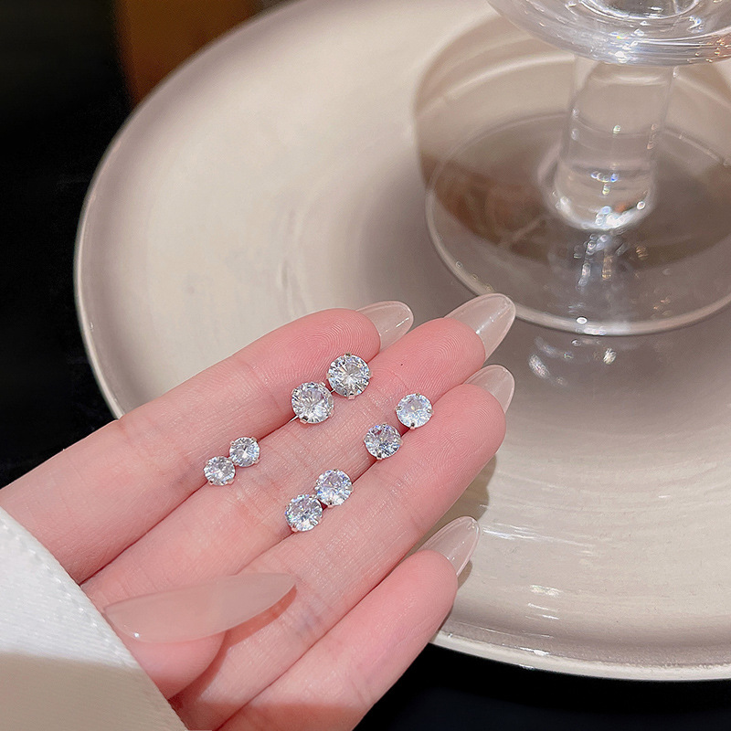 S925 Silver Needle Simple Exquisite Zircon Earrings Women's Light Luxury Niche All-match Elegant Cold Wind Earrings Earrings Wholesale
