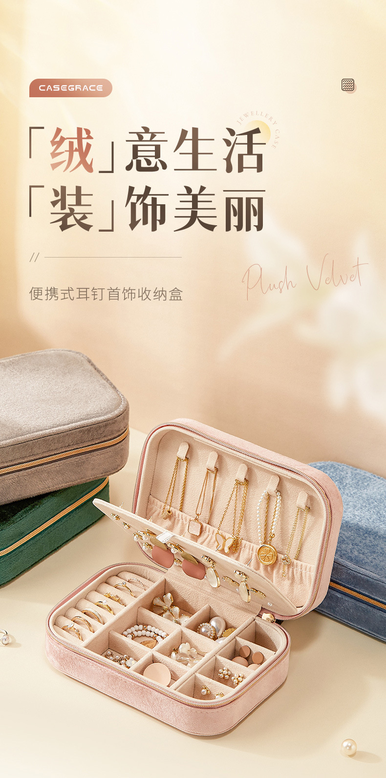 Cross-Border Jewelry Box Velvet High-End Double-Layer Large-Capacity Earrings Ring Necklace Jewelry Storage Hand Jewelry Storage Box