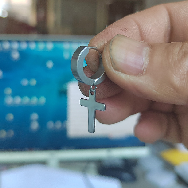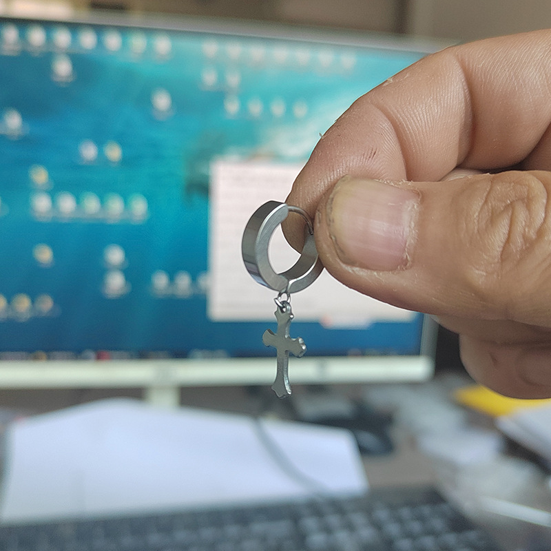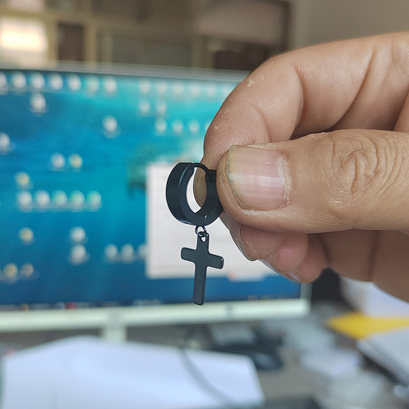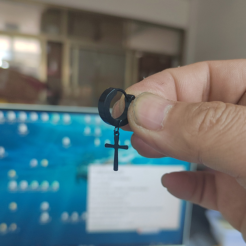 Cross pendant earrings ear buckle personality trendy earrings stainless steel hip hop earrings new black trendy Korean style