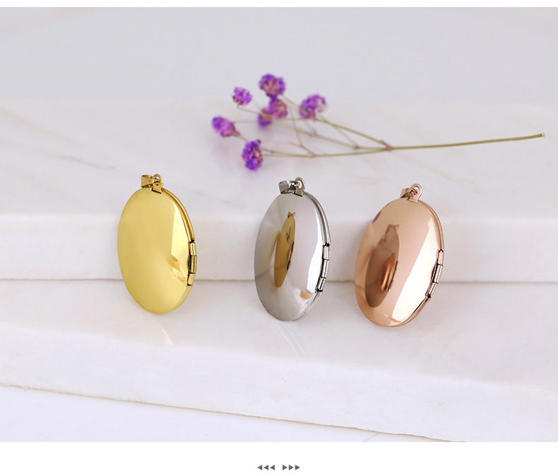 Color: [necklace] oval glossy photo box 30*24mm/rose gold
