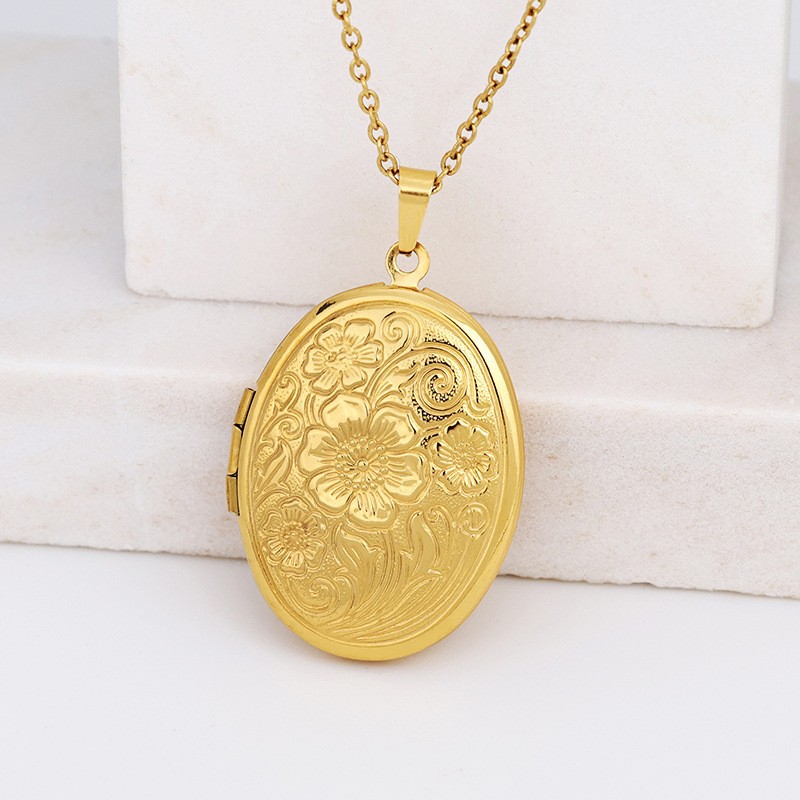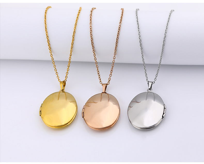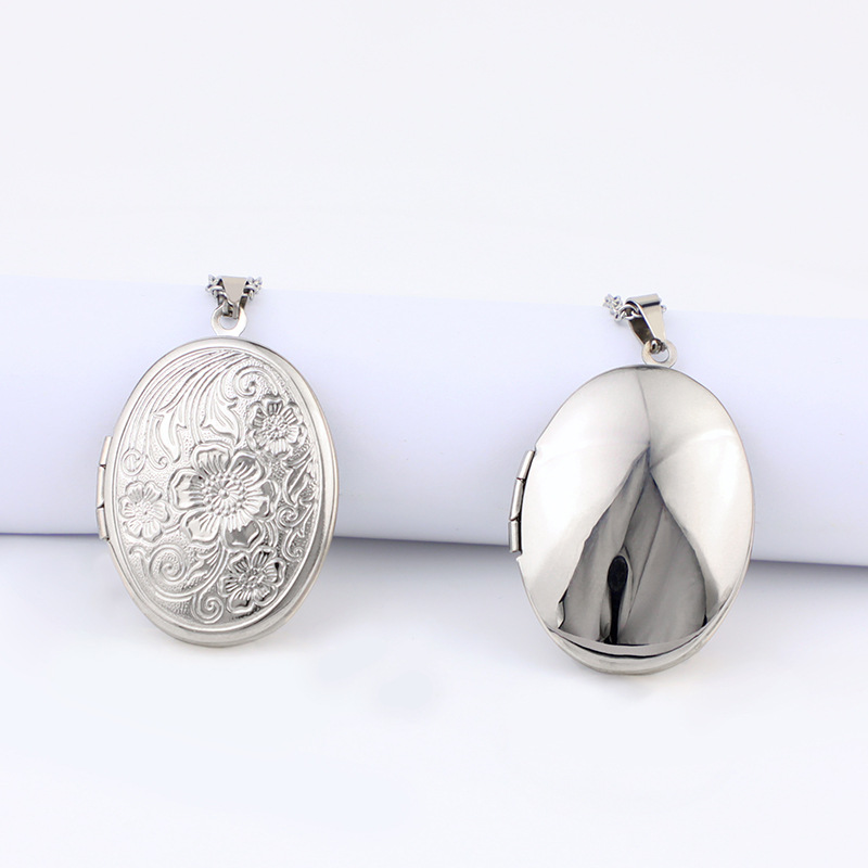 Color: [necklace] stainless steel peach blossom pattern oval photo box 24.5*33.5mm/steel color