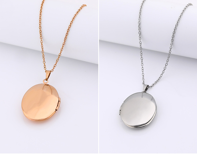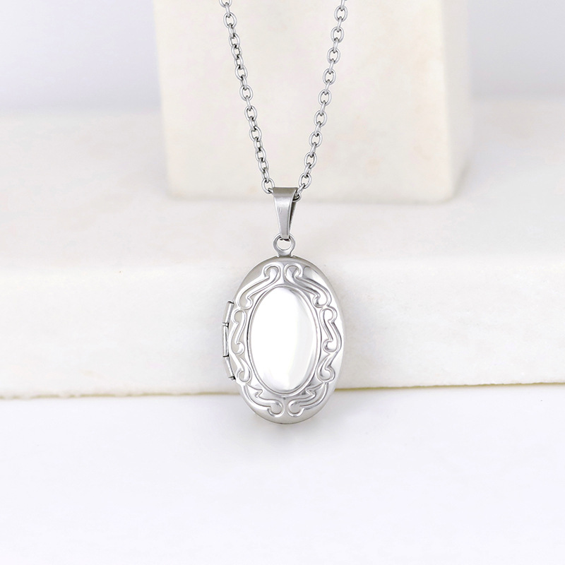 Color: [necklace] stainless steel ruyi pattern oval photo box 16*24mm/steel color
