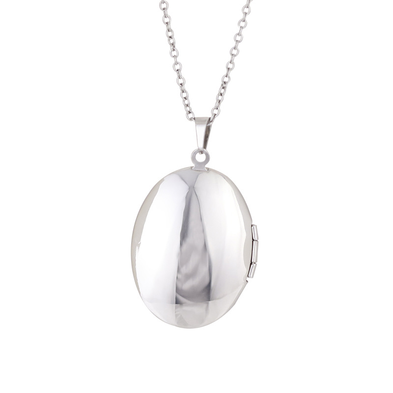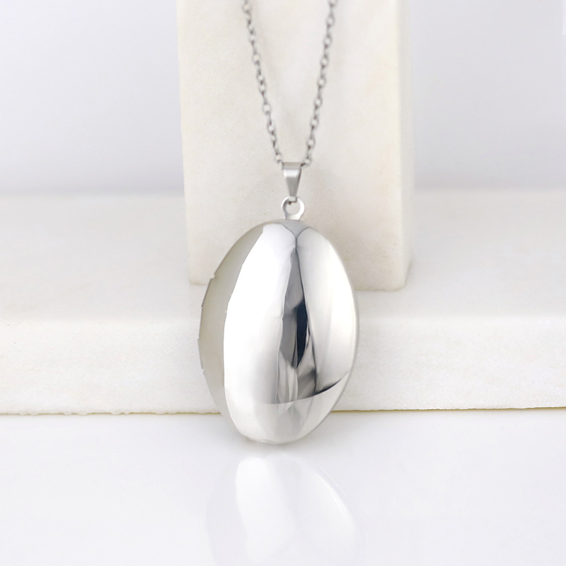 Color: [necklace] oval glossy photo box 40*27mm/steel color