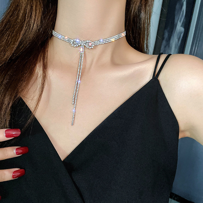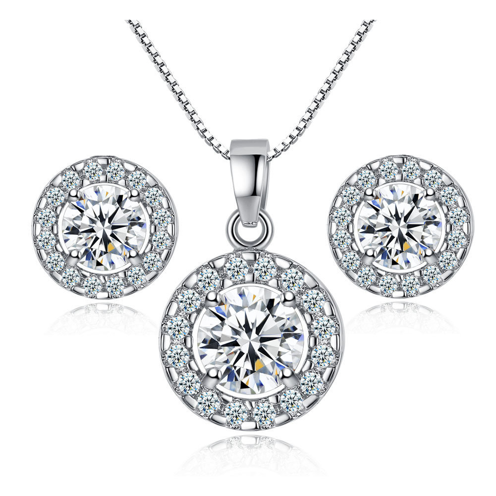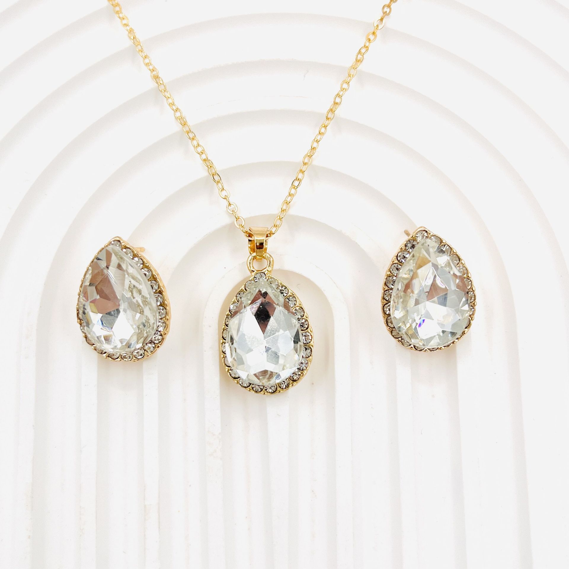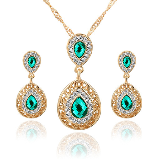 Color: Water Drop Gem Diamond Necklace Earrings Set-Green-